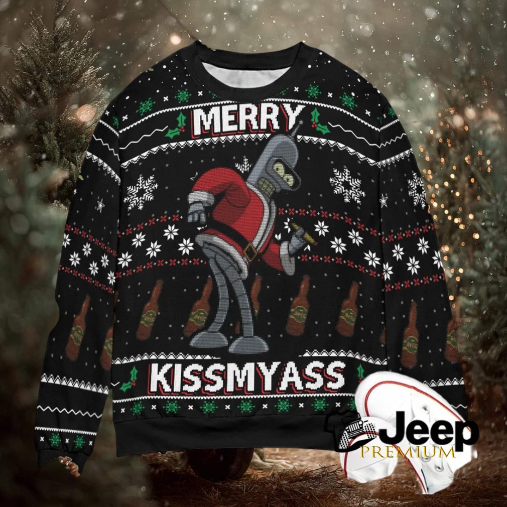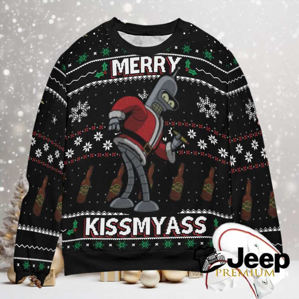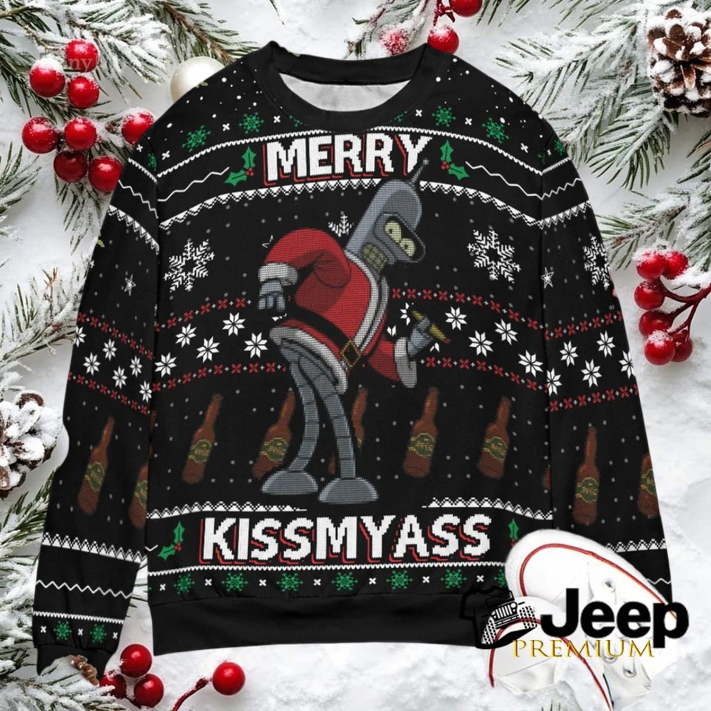 👕 About Merry Kissmyass Santa Bender Futurama Ugly Christmas Sweatshirt