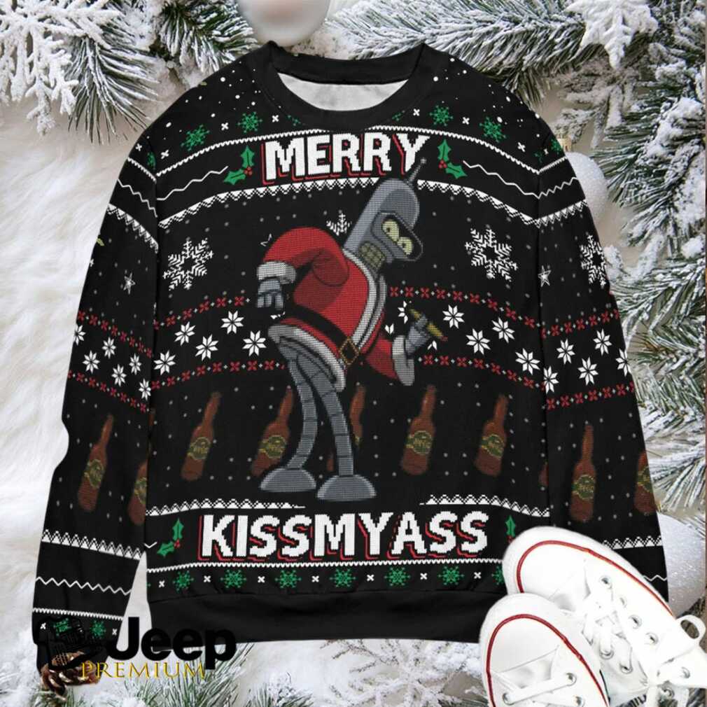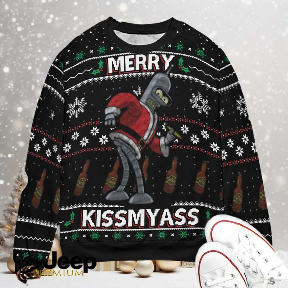 👕 About Merry Kissmyass Santa Bender Futurama Ugly Christmas Sweatshirt
