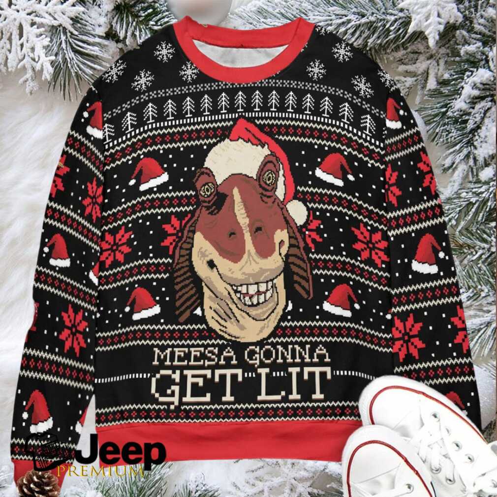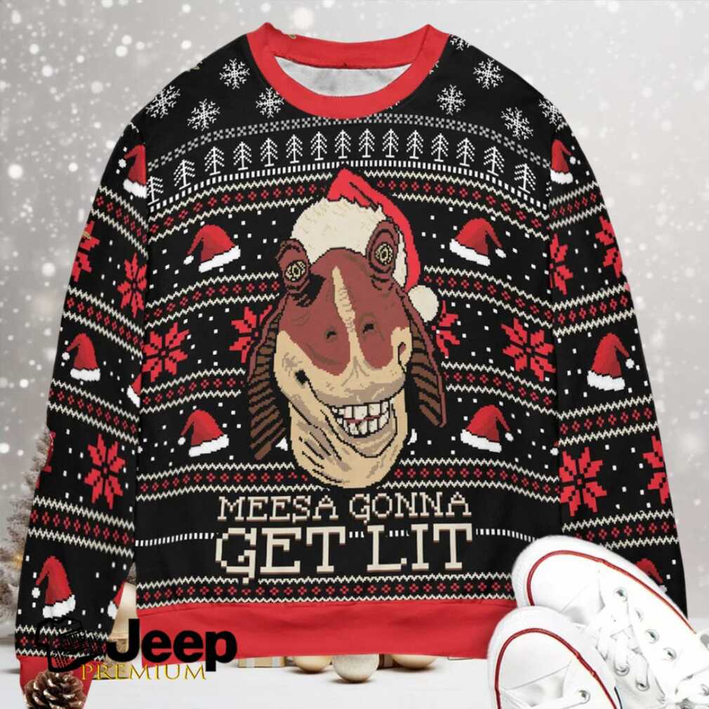 Yousa gonna have the best Christmas ever with this “Messa Gonna Get Lit Star Wars Ugly Ugly Christmas Sweatshirt”! Embrace the quirky side of the Force with this hilarious sweater featuring everyone’s favorite Gungan, Jar Jar Binks, spreading some holiday cheer. This isn’t just another boring Christmas sweater; it’s a conversation starter, a meme come to life, and a must-have for any true Star Wars fan with a sense of humor. Perfect for holiday parties, Star Wars marathons, or just showing off your unique style.