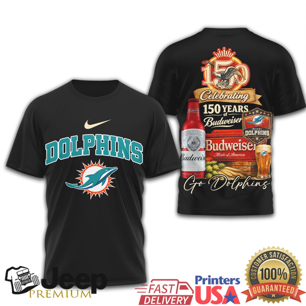 (Miami Dolphins 150 Years of Budweiser Celebration Fan Shirt)Miami Dolphins 150 Years of Budweiser Celebration Fan Shirt, Treat yourself or make a great gift for your loved ones