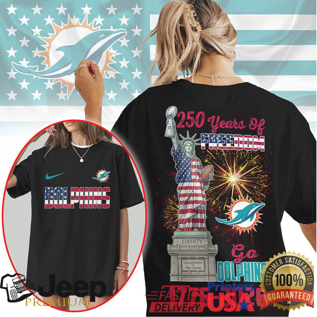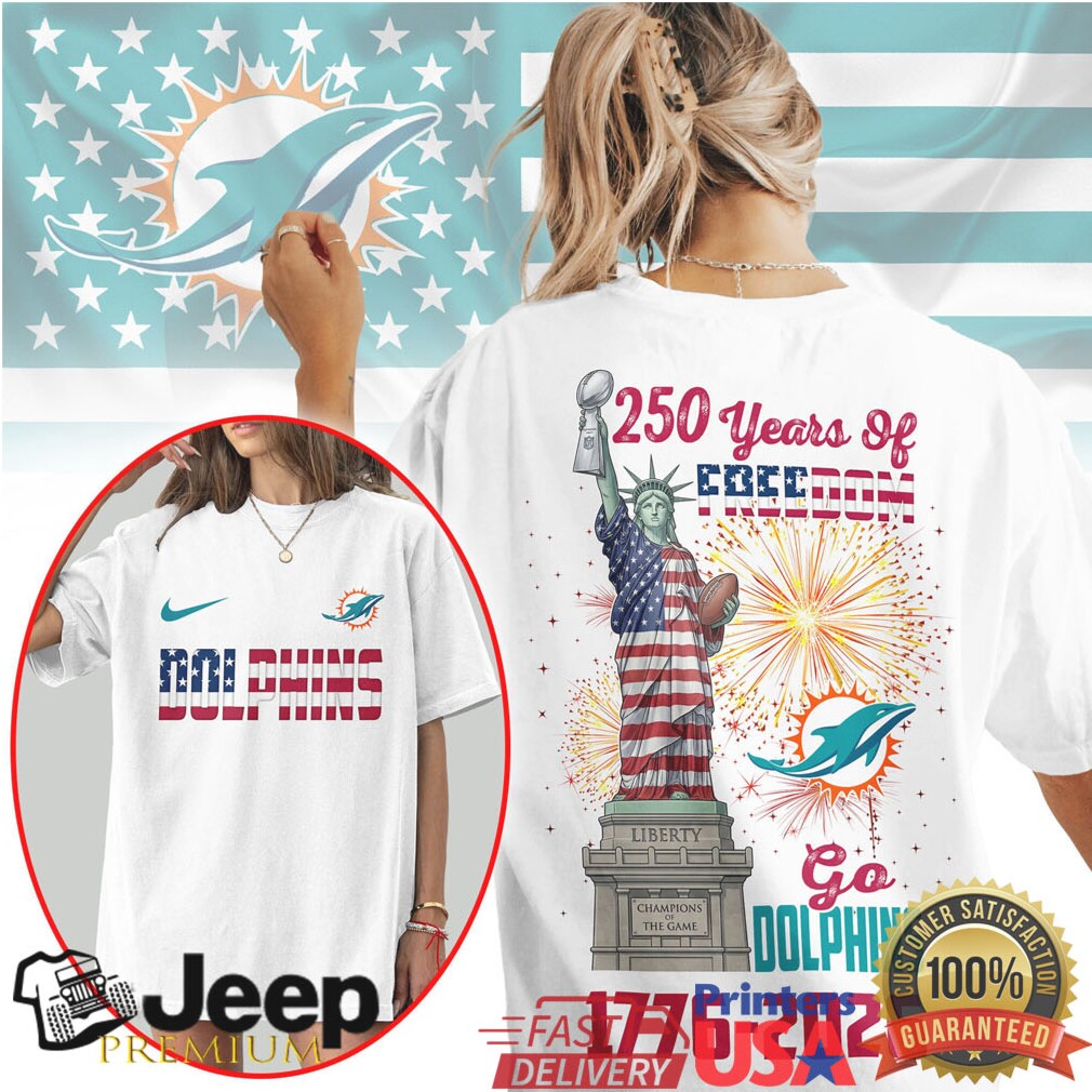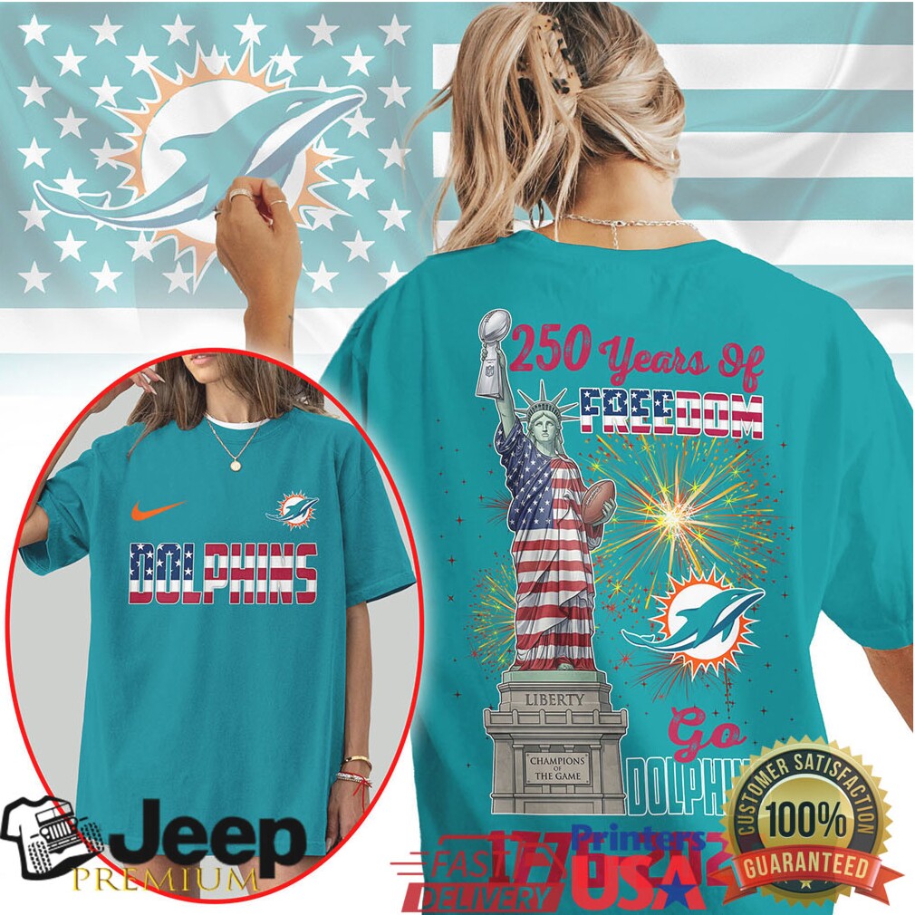 👕 About Miami Dolphins 250 Years of Freedom 1776 2026 Statue of Liberty T Shirt