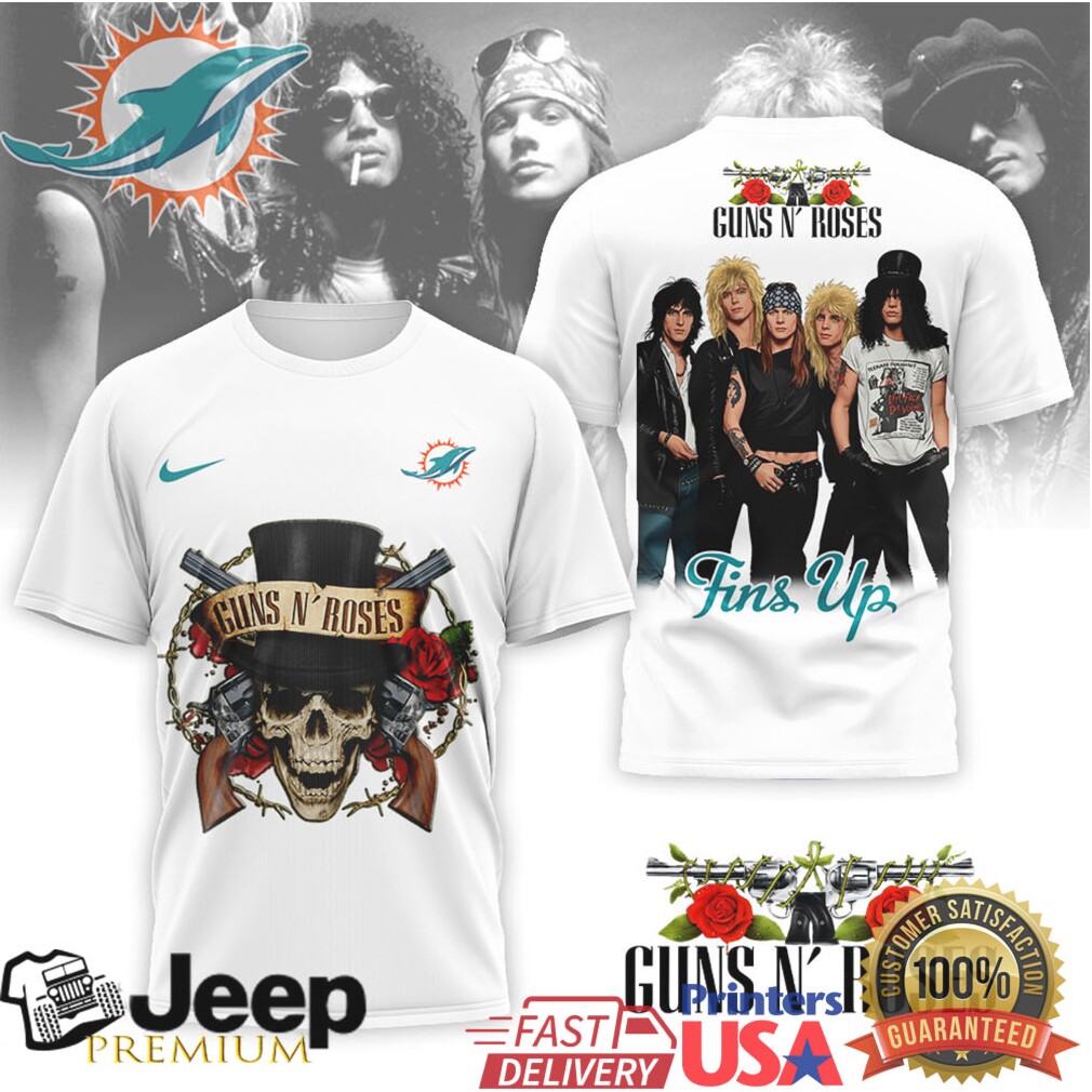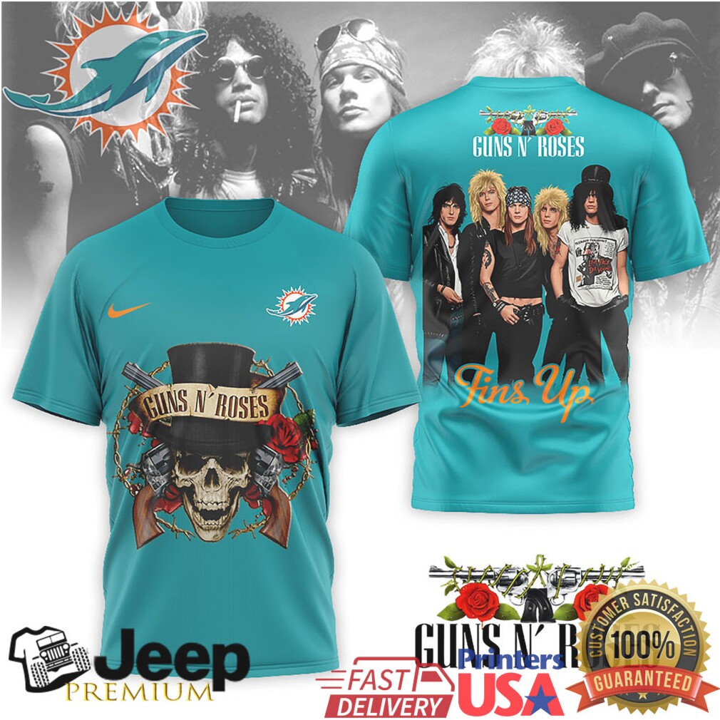 (Miami Dolphins Fins Up x Guns N’ Roses Rock Band T Shirt)Miami Dolphins Fins Up x Guns N’ Roses Rock Band T Shirt, Treat yourself or make a great gift for your loved ones