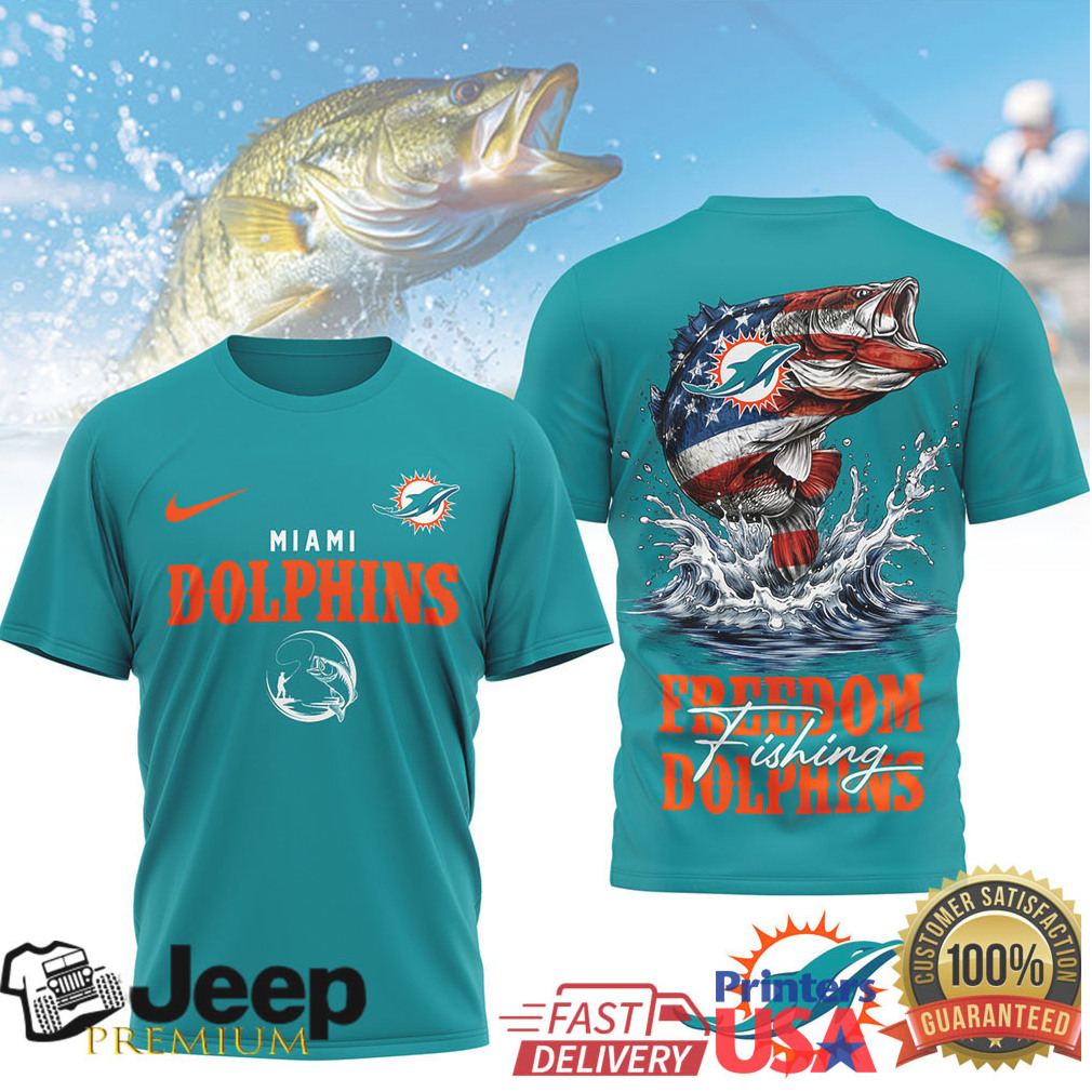 (Miami Dolphins Freedom Fishing Bass American Flag NFL T Shirt)Miami Dolphins Freedom Fishing Bass American Flag NFL T Shirt, Treat yourself or make a great gift for your loved ones