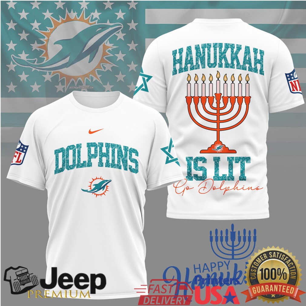 👕 About Miami Dolphins Hanukkah Is Lit Menorah T Shirt