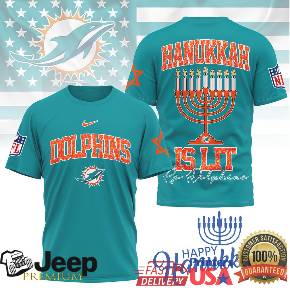(Miami Dolphins Hanukkah Is Lit Menorah T Shirt)