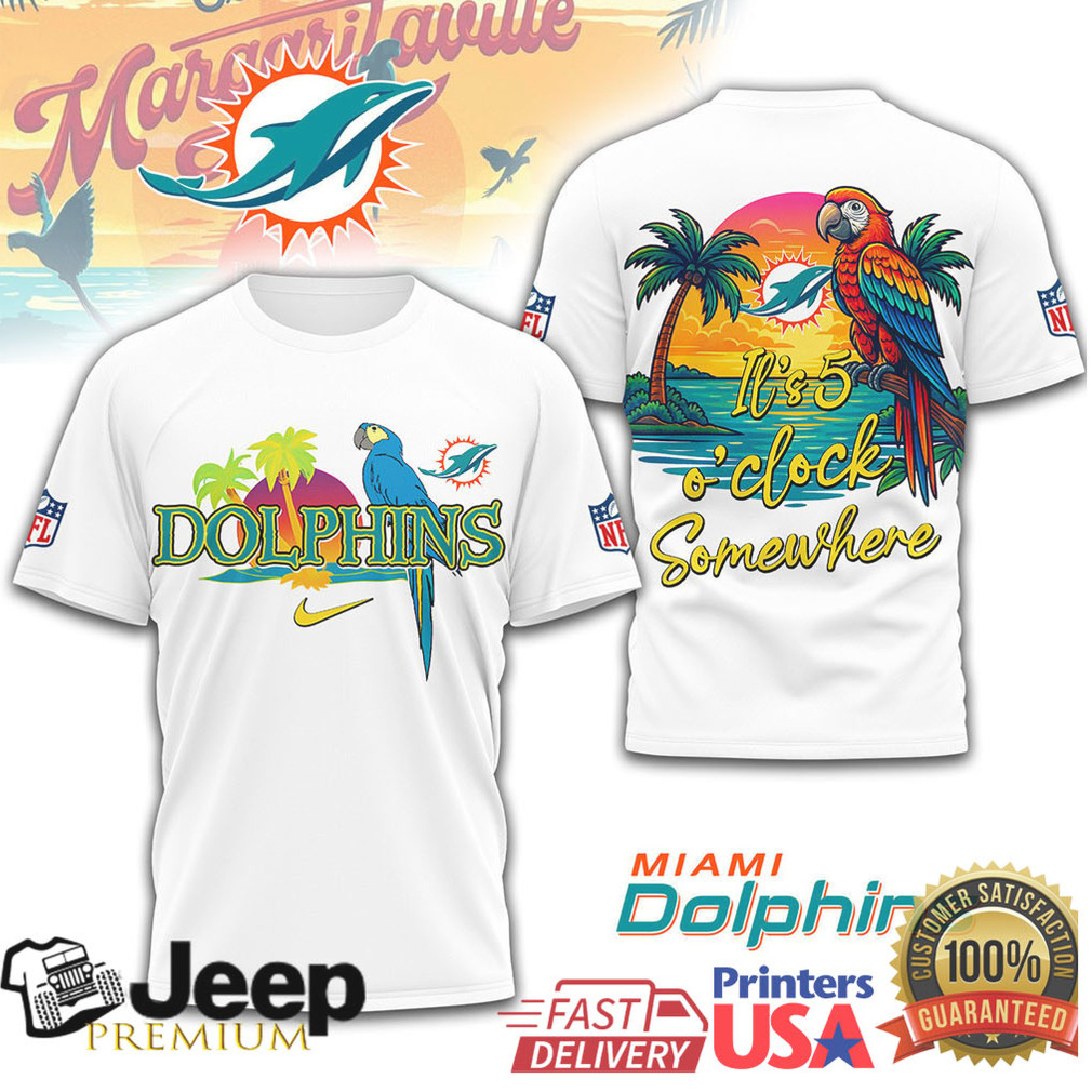 ()Miami Dolphins It’s 5 O’Clock Somewhere Sunset Parrot Fan Shirt, Treat yourself or make a great gift for your loved ones