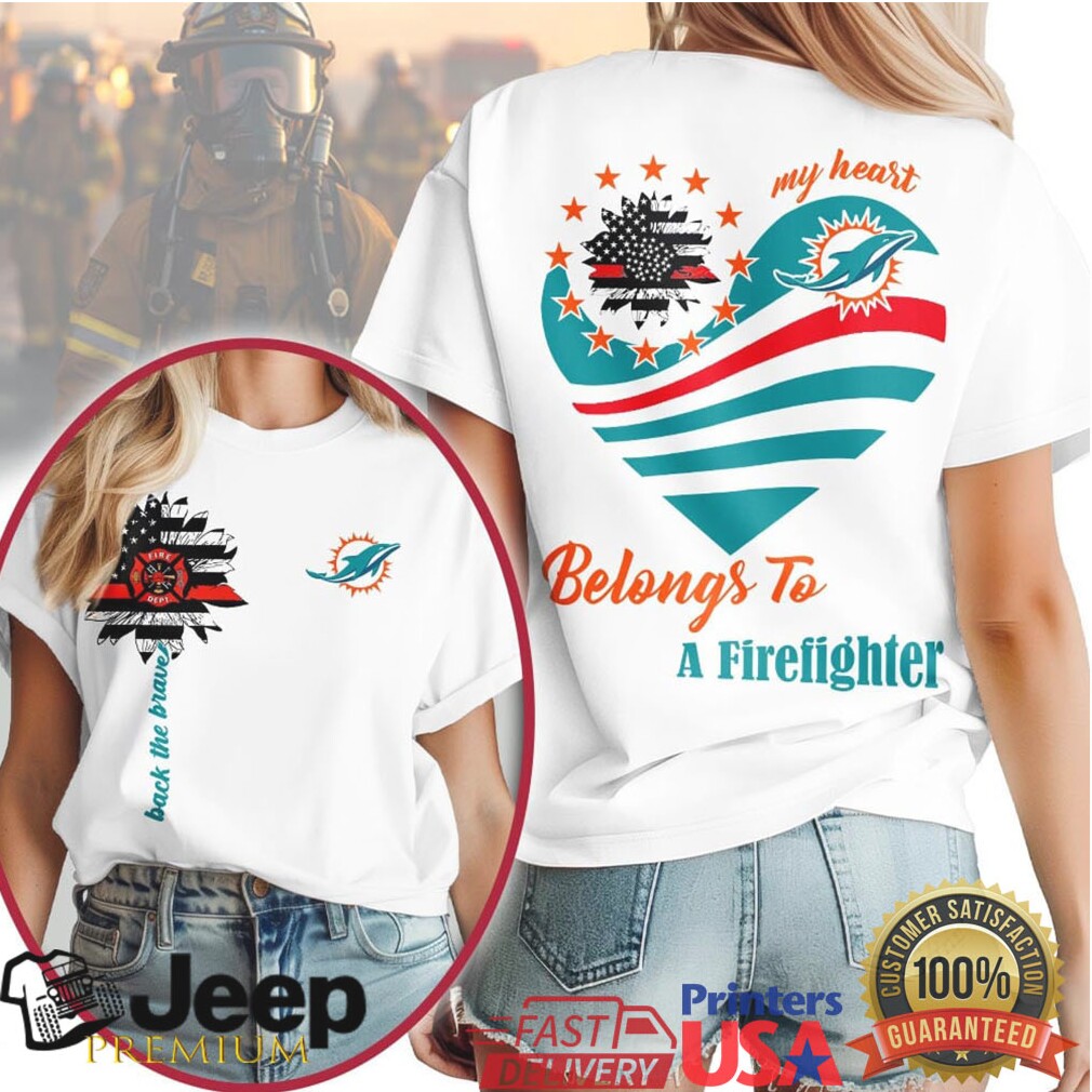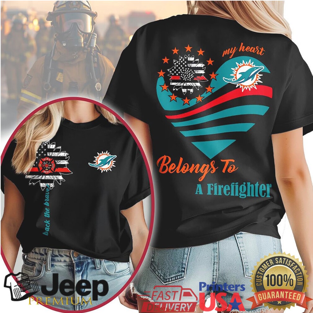 👕 About Miami Dolphins My Heart Belongs To A Firefighter Thin Red Line T Shirt