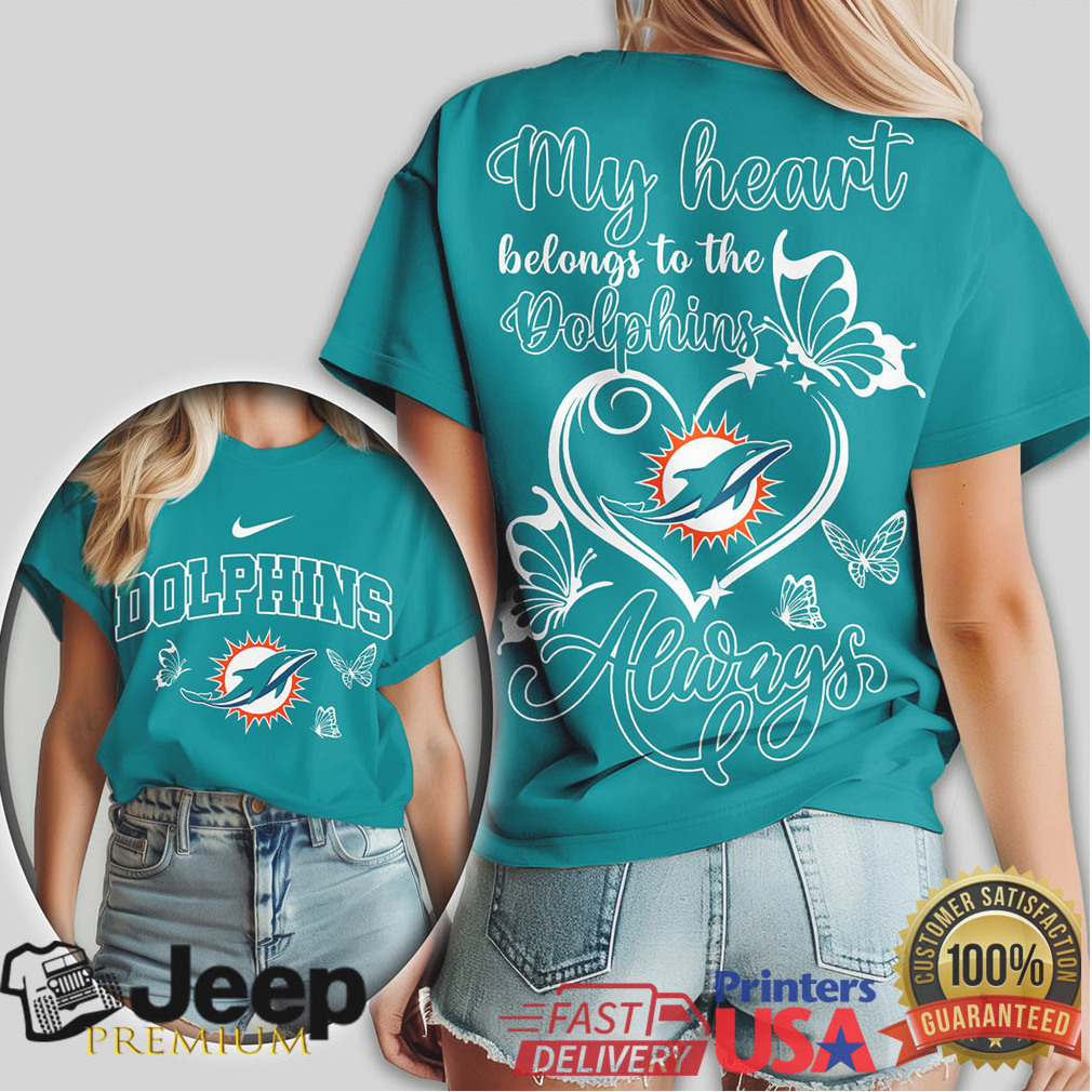 👕 About Miami Dolphins My Heart Belongs To The Dolphins Always Butterfly T Shirt