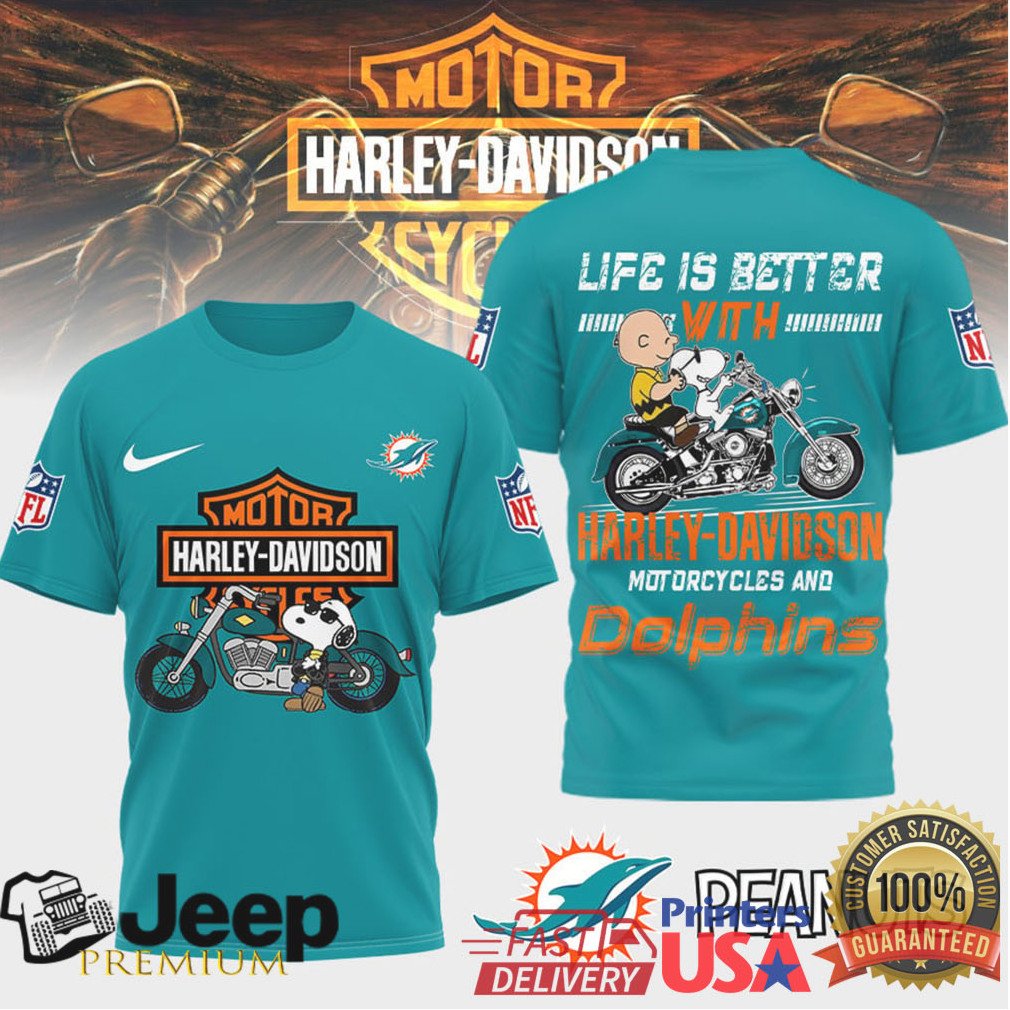 ()Miami Dolphins Official NFL Peanuts Harley Davidson 3D Shirt, Treat yourself or make a great gift for your loved ones