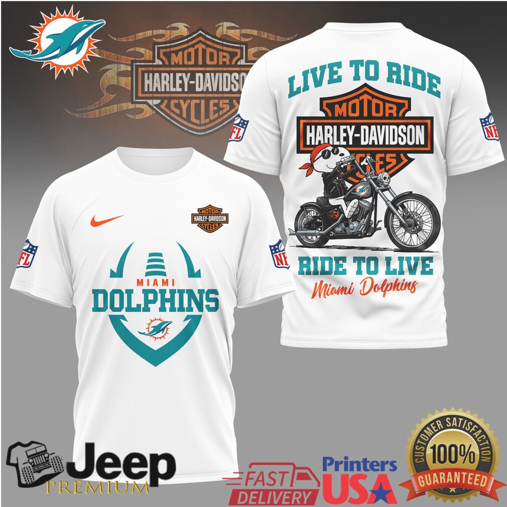 👕 About Miami Dolphins Official NFL Snoopy Harley Davidson 3D Shirt