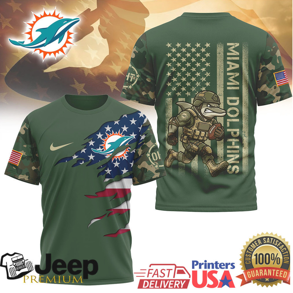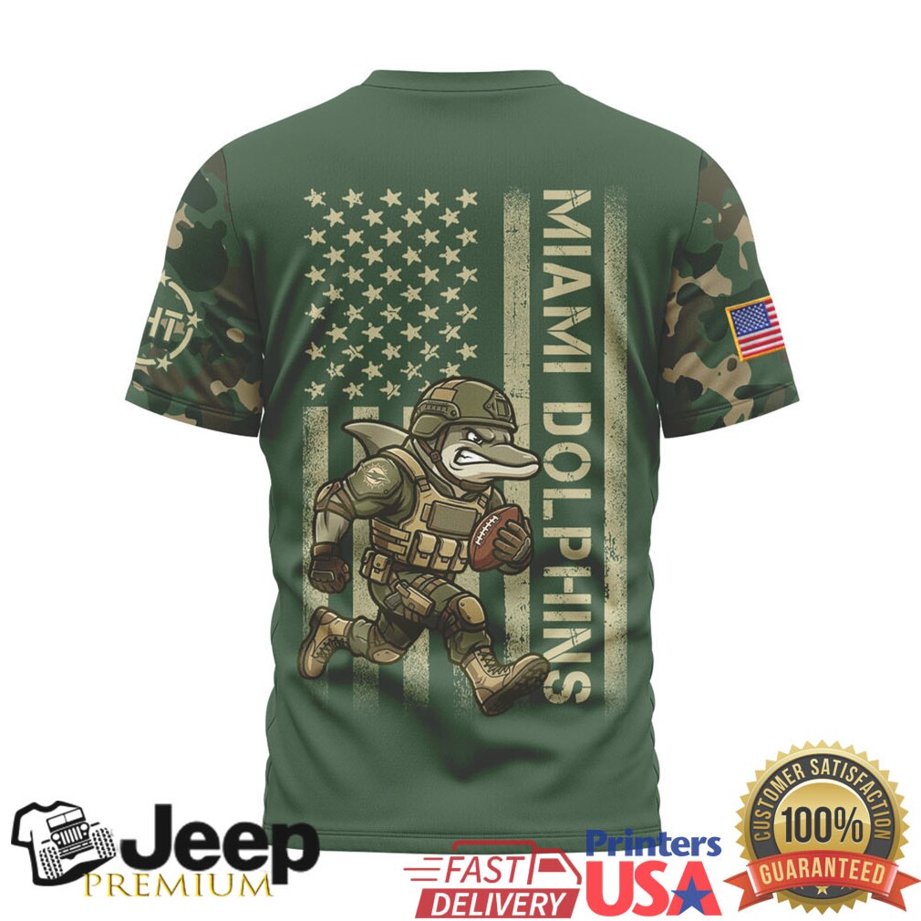 ()Miami Dolphins Patriotic Military T Shirt Dolphins Mascot Soldier & US Flag, Treat yourself or make a great gift for your loved ones