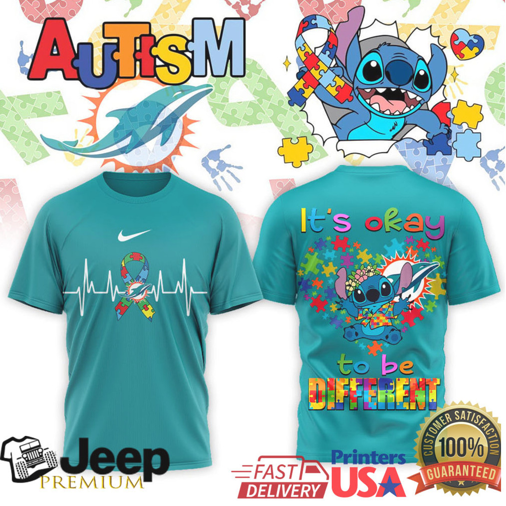 ()Miami Dolphins Stitch Autism Awareness It’s Okay To Be Different Tee, Treat yourself or make a great gift for your loved ones