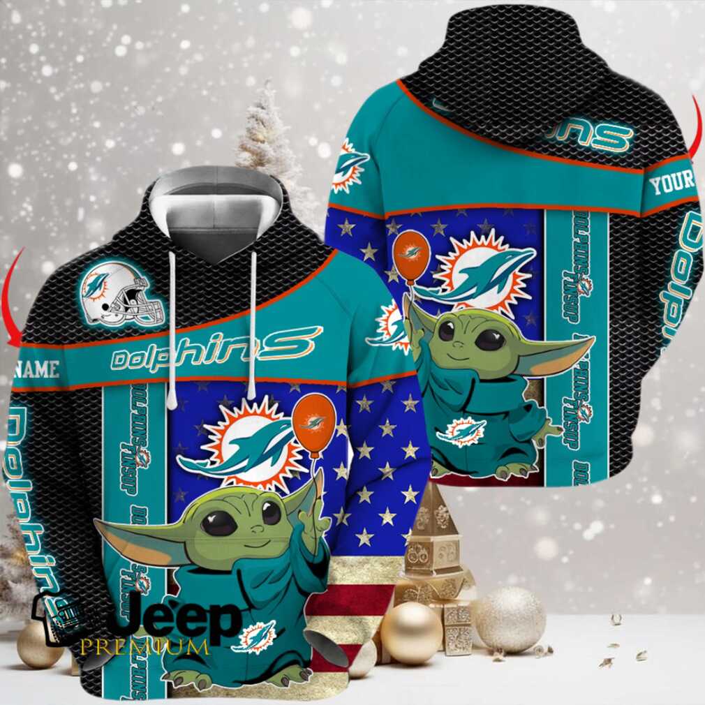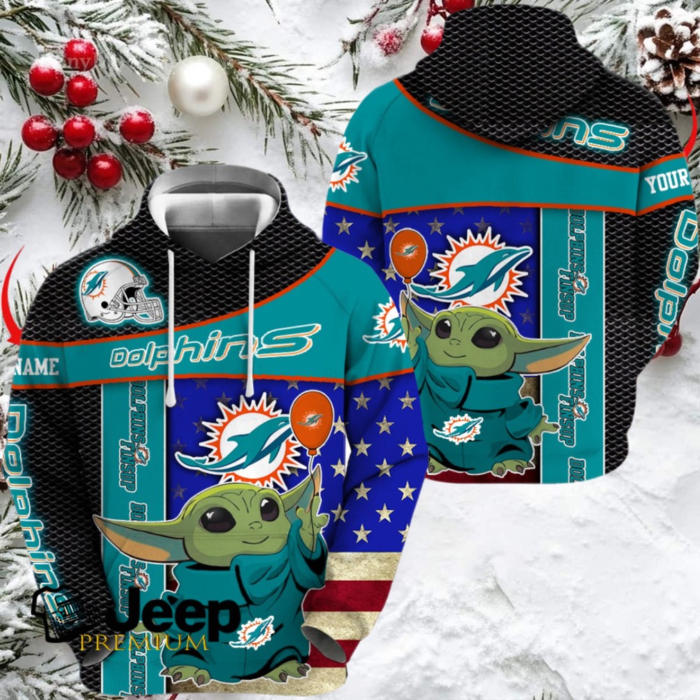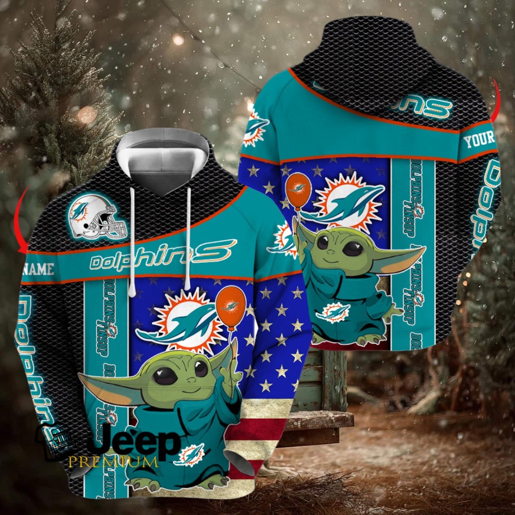 👕 About Miami Dolphins x Baby Yoda Holding Baloon Football Hoodie 3D Custom Name