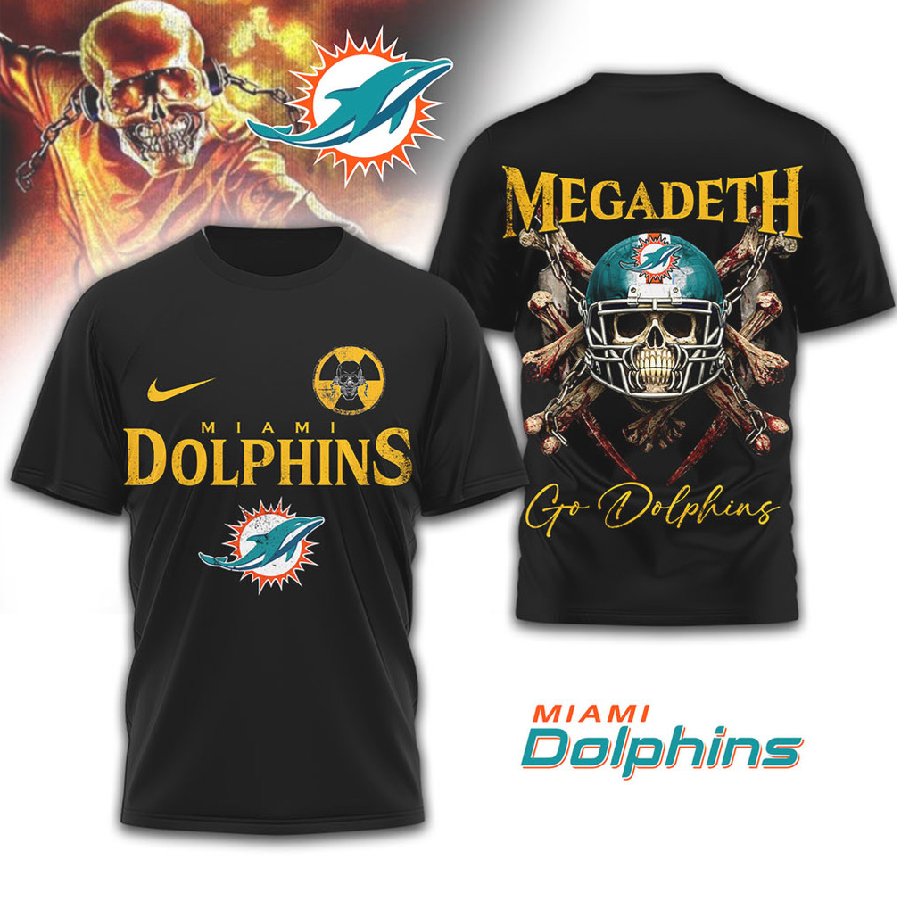()Miami Dolphins x Megadeth Metal Skull Football Fan T Shirt, Treat yourself or make a great gift for your loved ones