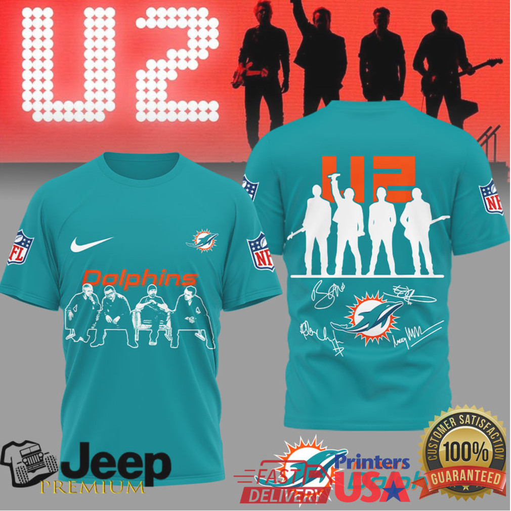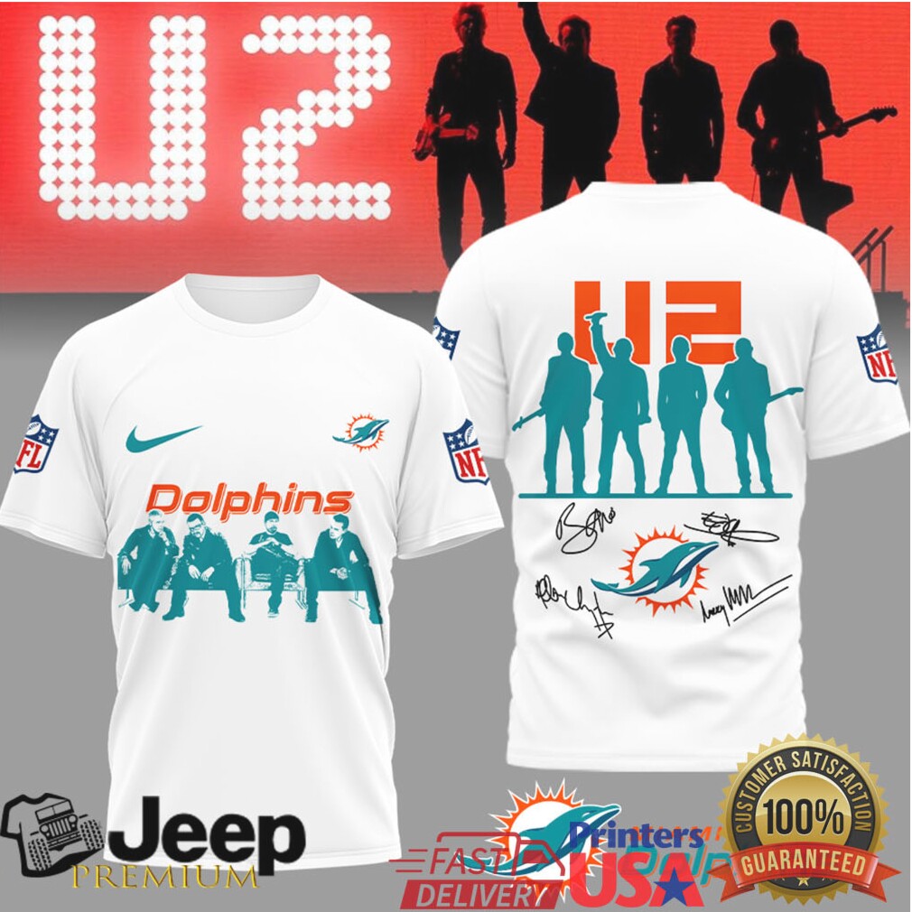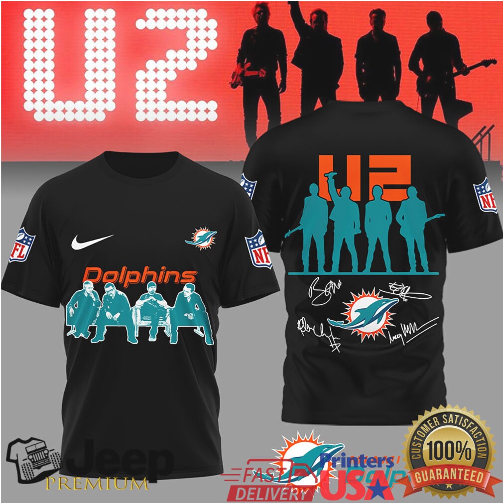👕 About Miami Dolphins x U2 Band Signature Silhouette NFL Fan T Shirt
