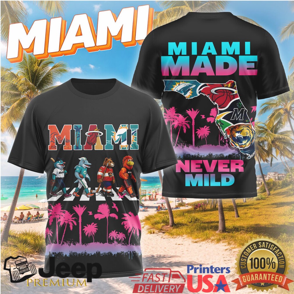 👕 About Miami Made Never Mild Florida Sports Mascot Collage T Shirt