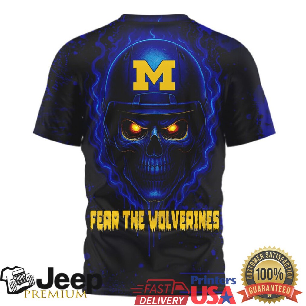 (Michigan Wolverines Fear The Wolverines Skull Helmet 3D All Over Print T Shirt)Michigan Wolverines Fear The Wolverines Skull Helmet 3D All Over Print T Shirt, Treat yourself or make a great gift for your loved ones