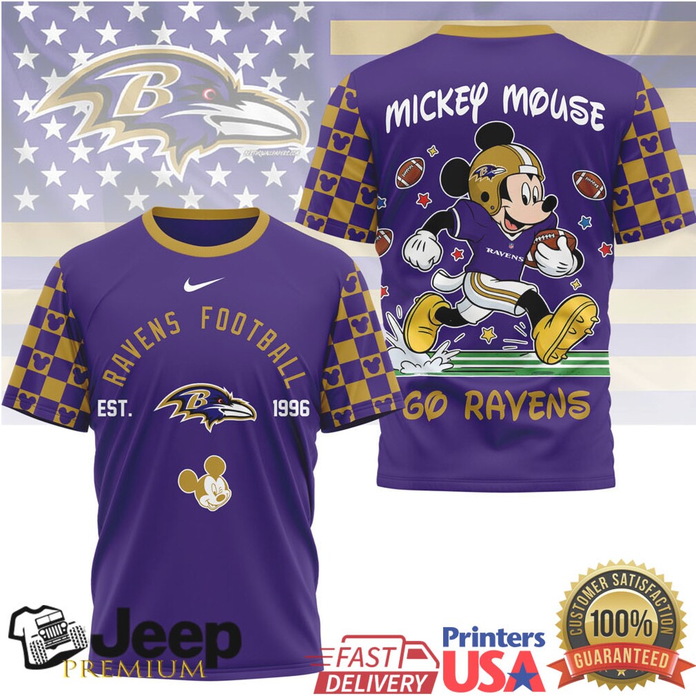 (Mickey Mouse Baltimore Ravens Checkered Sleeve NFL T Shirt)Mickey Mouse Baltimore Ravens Checkered Sleeve NFL T Shirt, Treat yourself or make a great gift for your loved ones