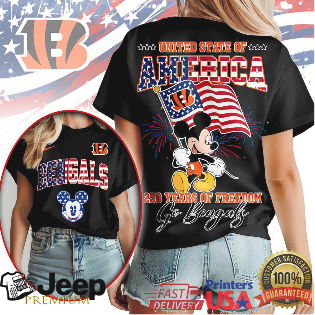 ()Mickey Mouse Cincinnati Bengals 250 Years Of Freedom USA Flag T Shirt, Treat yourself or make a great gift for your loved ones