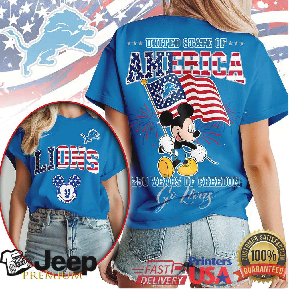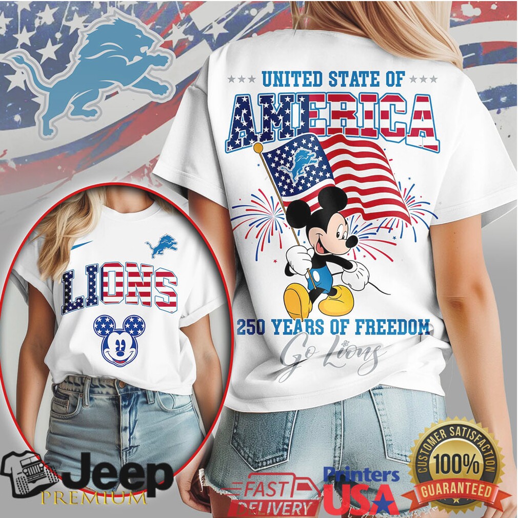 ()Mickey Mouse Detroit Lions 250 Years of Freedom US United State of America T Shirt, Treat yourself or make a great gift for your loved ones