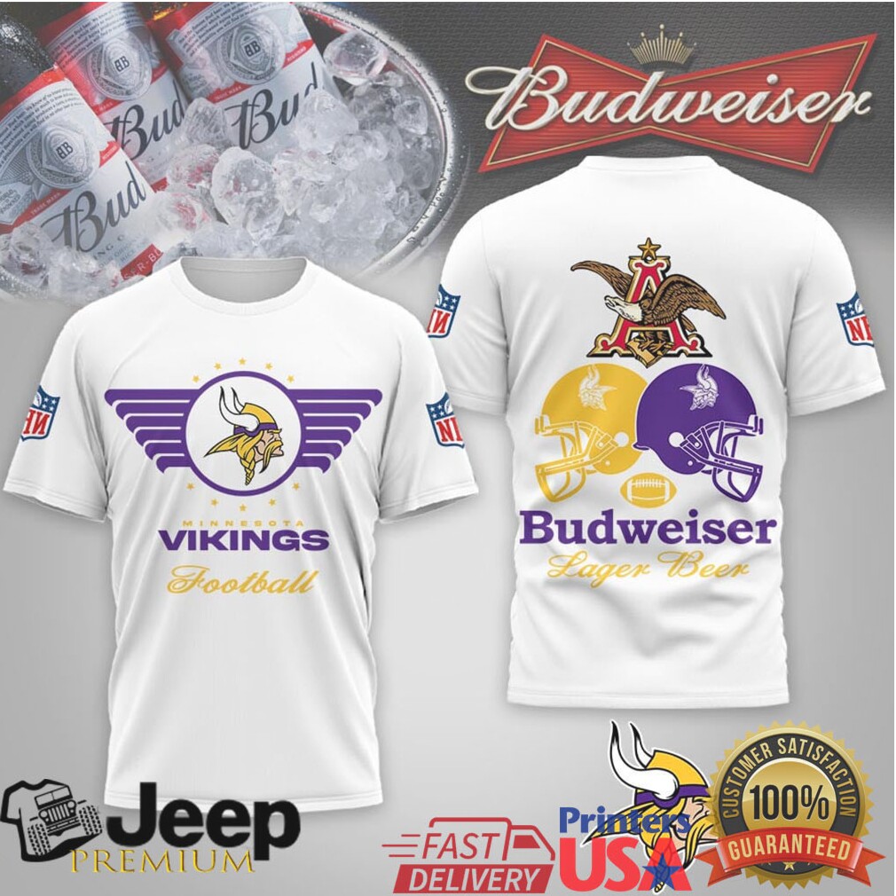 (Minnesota Vikings Budweiser Beer Helmet Graphic Sport T Shirt)Minnesota Vikings Budweiser Beer Helmet Graphic Sport T Shirt, Treat yourself or make a great gift for your loved ones