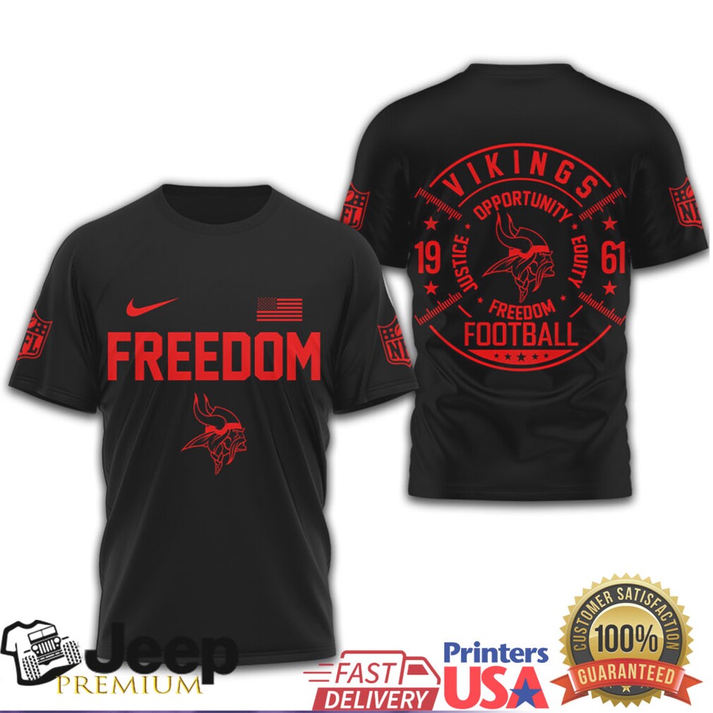 (Minnesota Vikings Freedom Football Justice Opportunity Equity T Shirt)The 2026 World Cup is being shared by the U.S., Mexico, and Canada mainly because it’s going to be huge—48 teams, way more games, and way more logistics. Hosting that alone would be a nightmare, so they teamed up and split the load. Some have suggested moving the cup to Brazil or maybe to China, somewhere where a world competition is regarded as an asset and not as a threat. Well, my suspicion is that an official boycott by the governments of other nations is not likely at all, and whichever teams qualify for the Cup will show up and play. Remember, the World Cup will be held in Canada, the US, and Mexico, so a boycott makes little sense as it impacts three host countries. Some of the things they agreed to do was streamline airports, Minnesota Vikings Freedom Football Justice Opportunity Equity T Shirt, and ease Visa requirements for some countries. The second Trump administration said that it was a bad deal because of Biden and changed its mind.