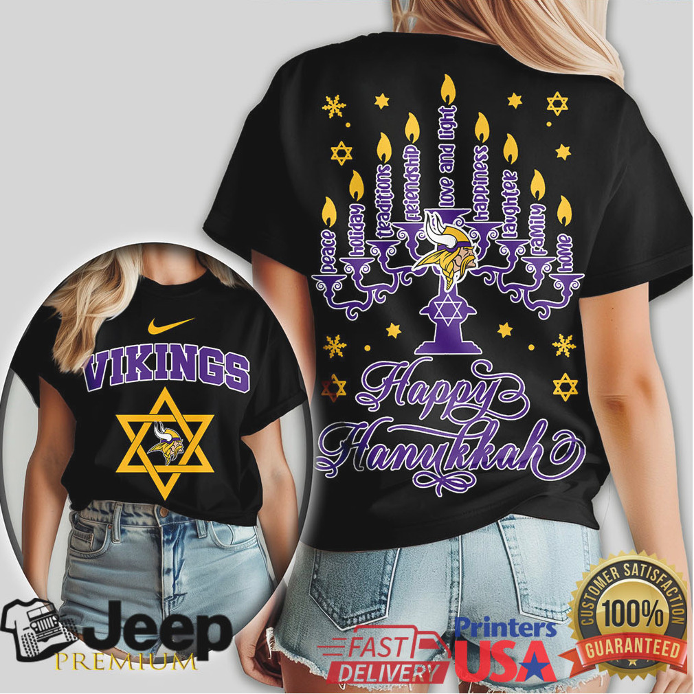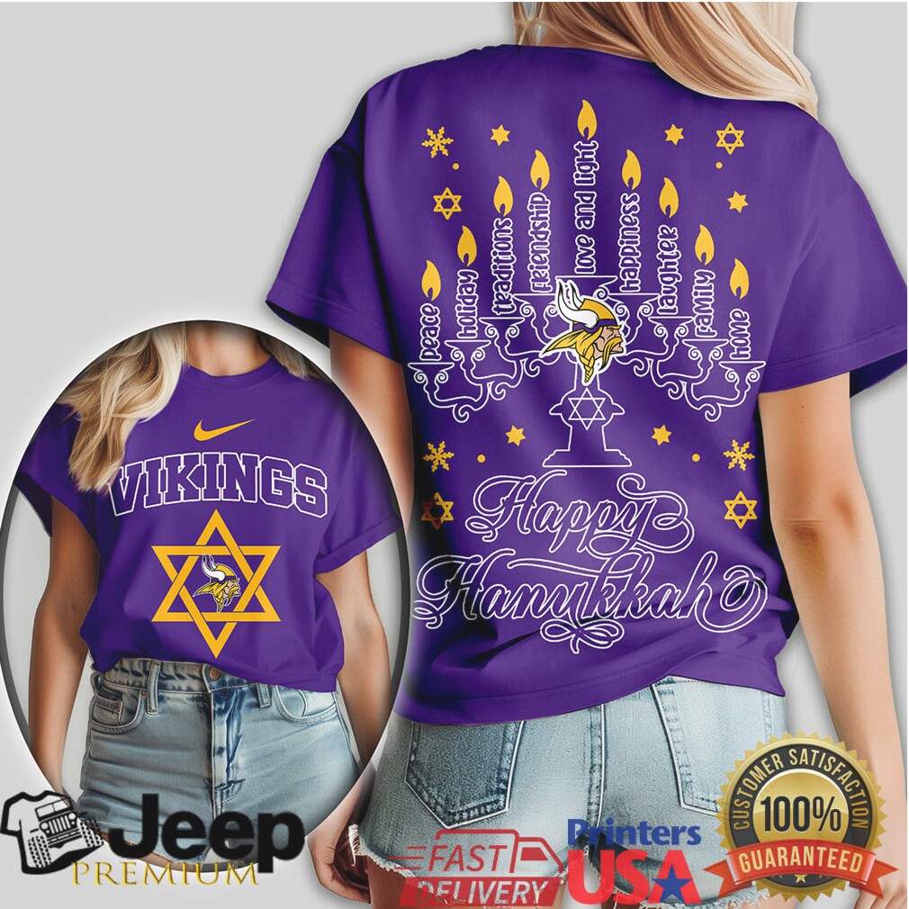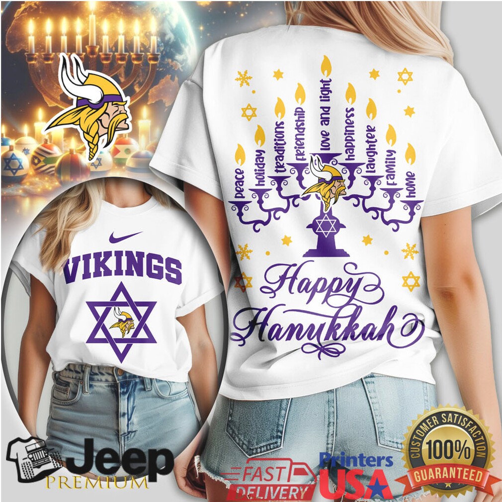(Minnesota Vikings Happy Hanukkah Menorah Star of David T Shirt)