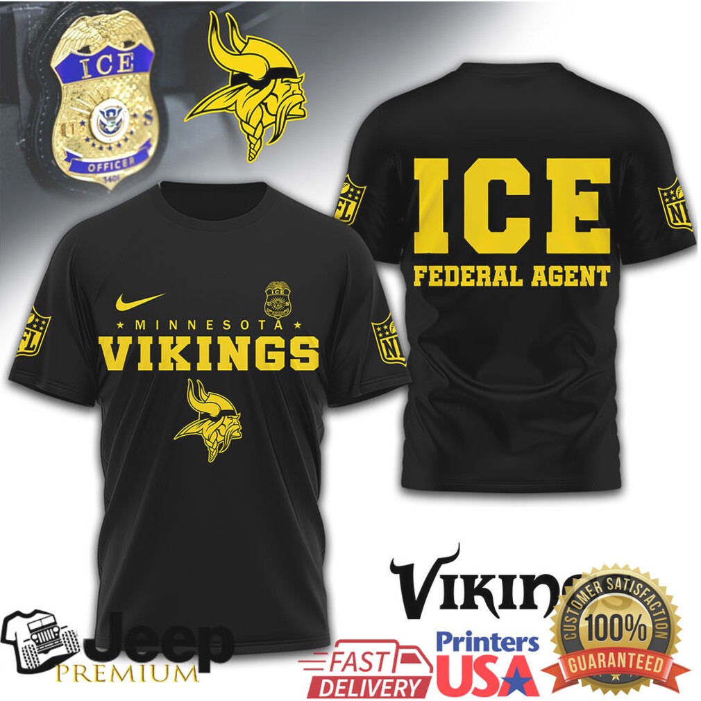 👕 About Minnesota Vikings ICE Federal Agent Gold Graphic Black T Shirt
