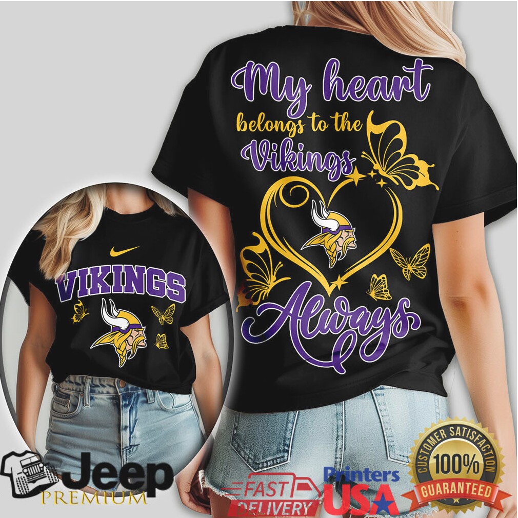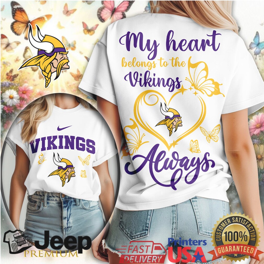 👕 About Minnesota Vikings My Heart Belongs To The Vikings Always Butterfly T Shirt