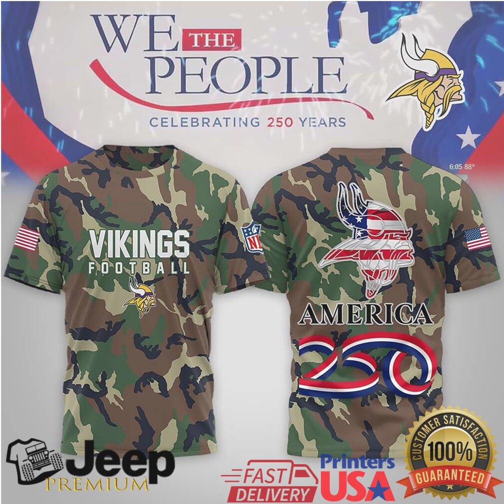 👕 About Minnesota Vikings NFL Camo T Shirt We The People 250 Years Patriot
