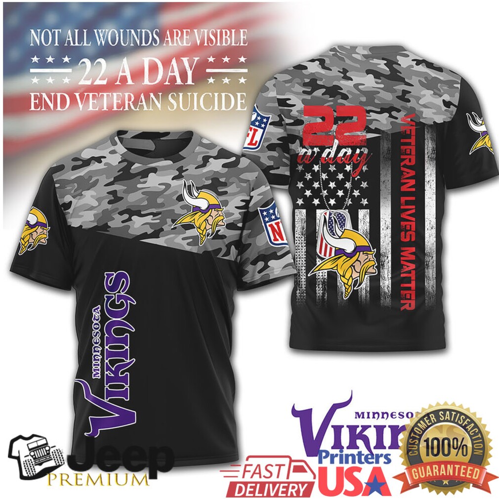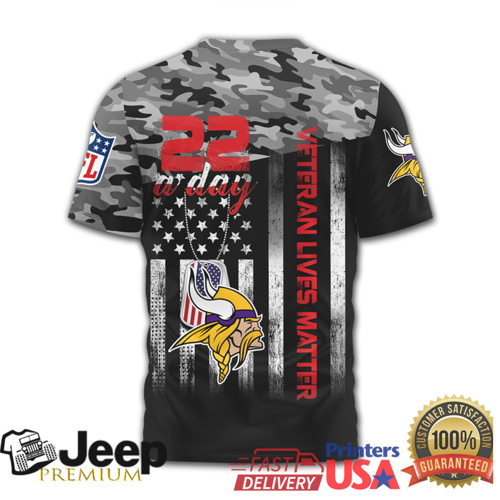 (Minnesota Vikings NFL Veteran Suicide Awareness 22 A Day Camo Jersey T Shirt)
