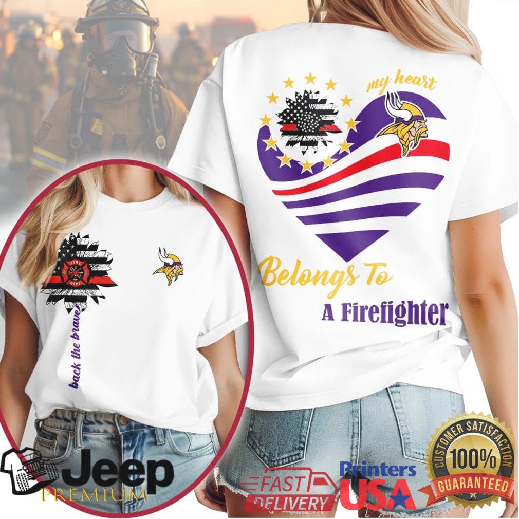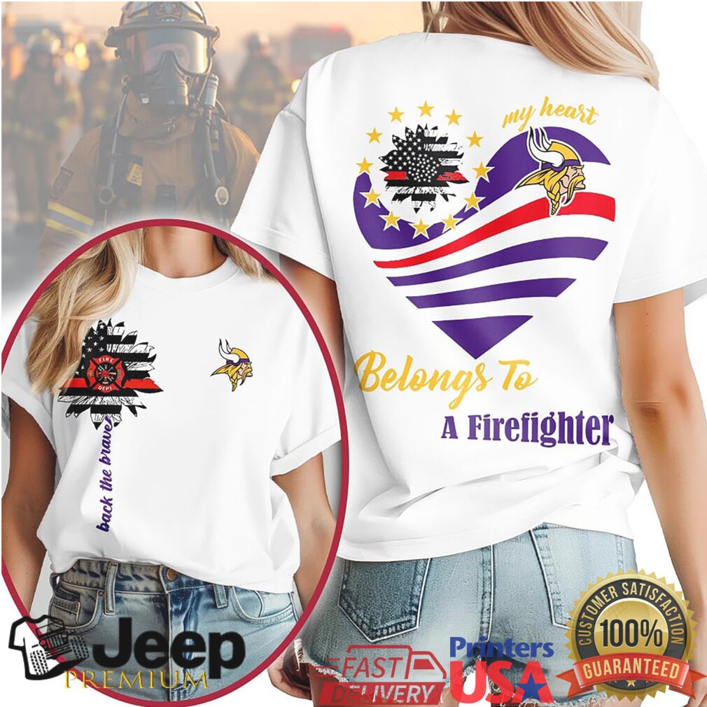 👕 About Minnesota Vikings Official NFL My Heart Belongs To A Firefighter T shirt