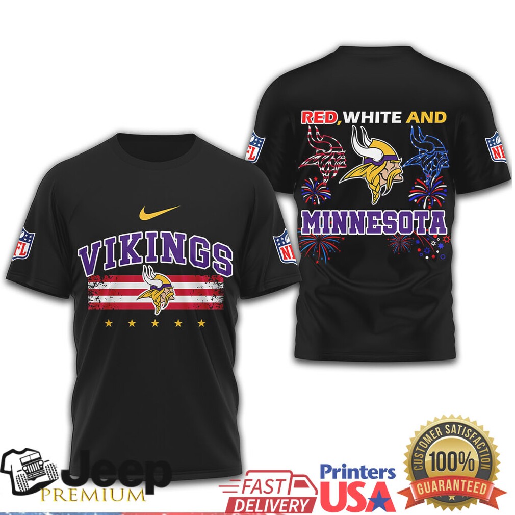 Minnesota Vikings Patriotic American Flag Fireworks Graphic T Shirt
