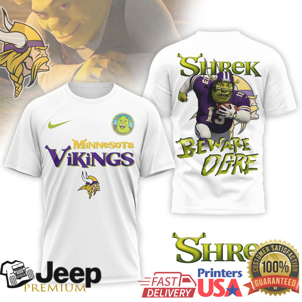 (Minnesota Vikings Shrek Beware Ogre Mashup T Shirt)Minnesota Vikings Shrek Beware Ogre Mashup T Shirt, Treat yourself or make a great gift for your loved ones