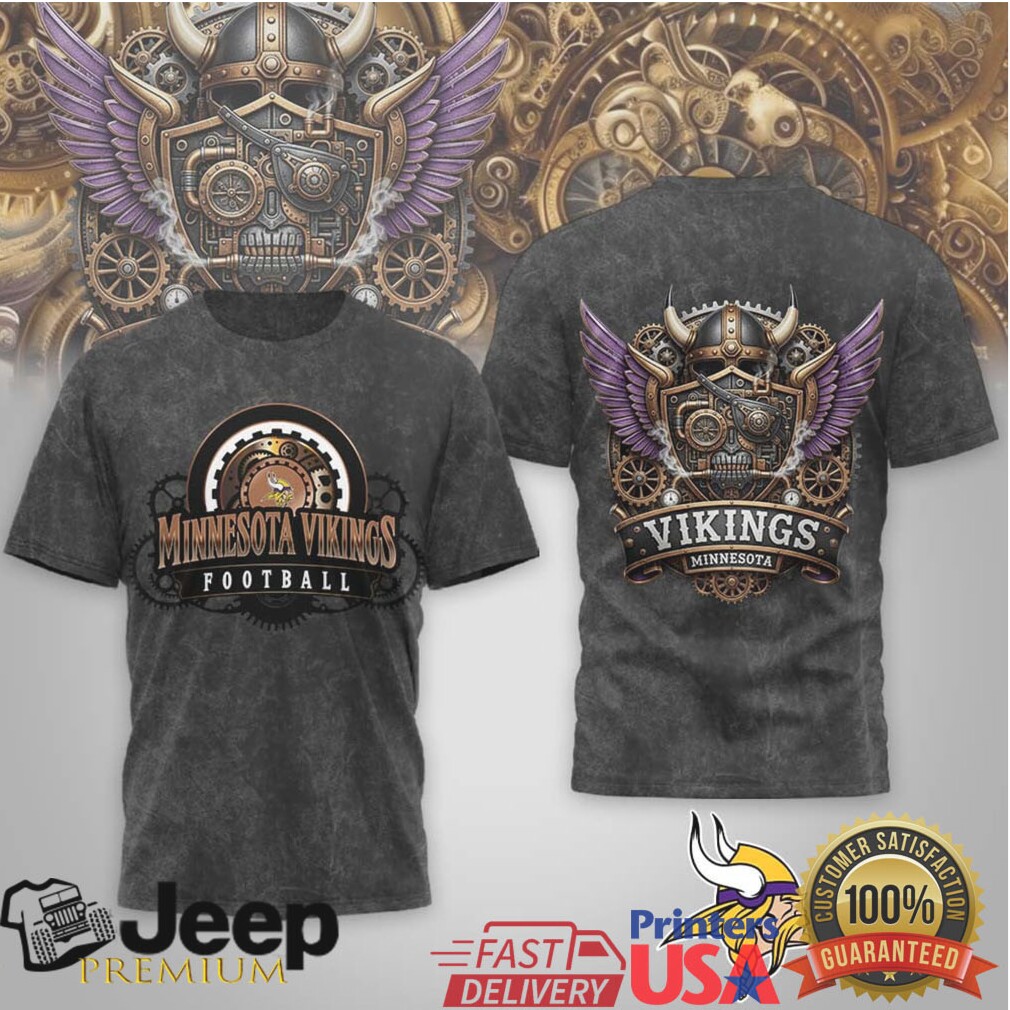 (Minnesota Vikings Steampunk Skull & Gears Mechanical Football T Shirt)