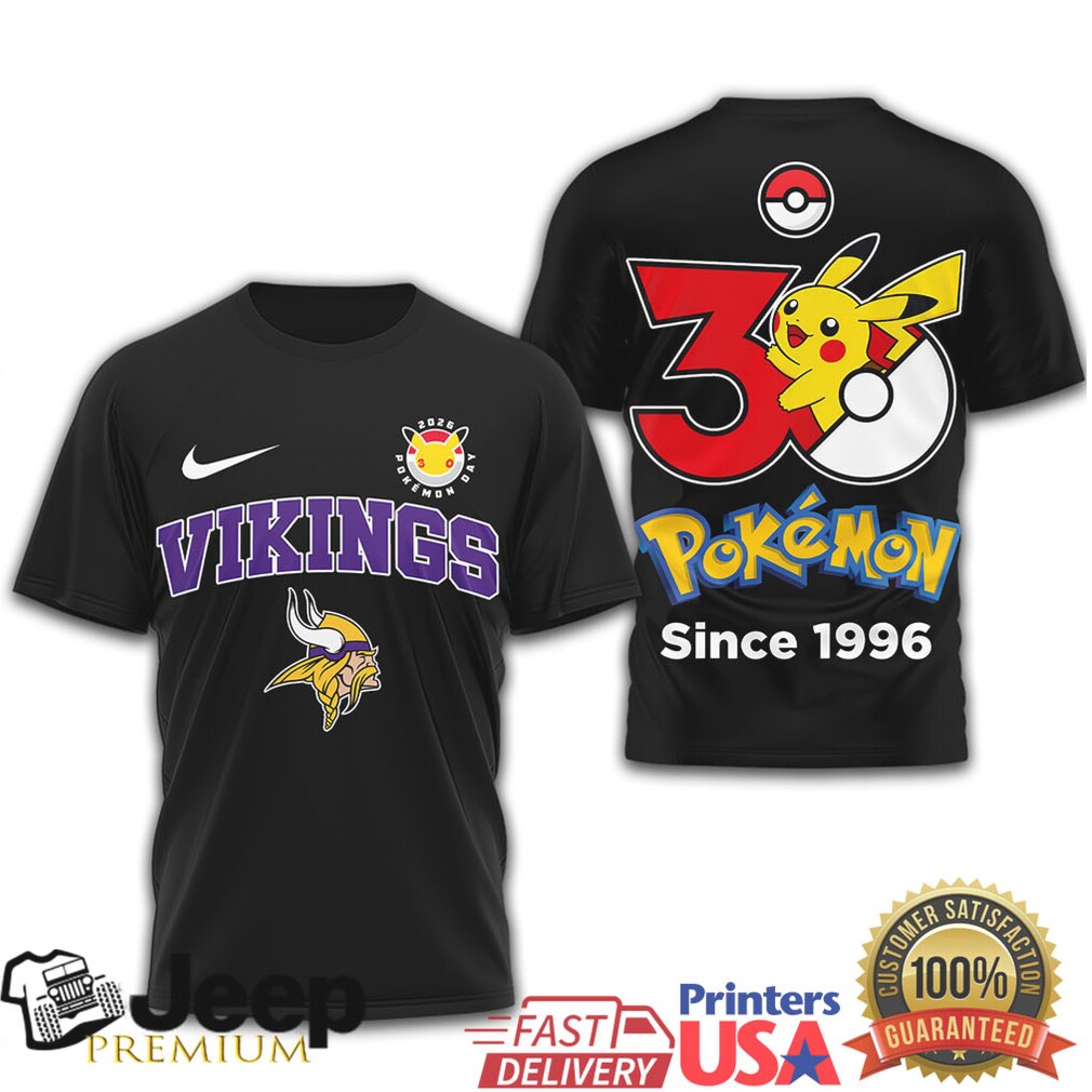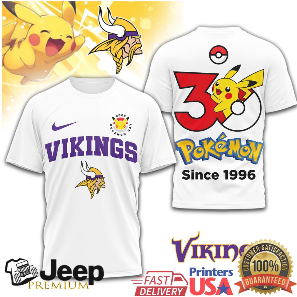 Minnesota Vikings x Pokémon 30th Anniversary Pikachu T Shirt Since 1996