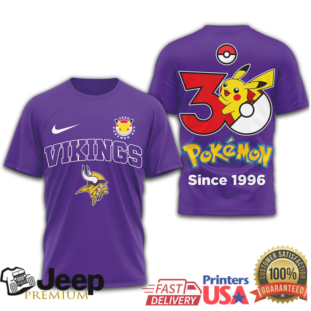 👕 About Minnesota Vikings x Pokémon 30th Anniversary Pikachu T Shirt Since 1996