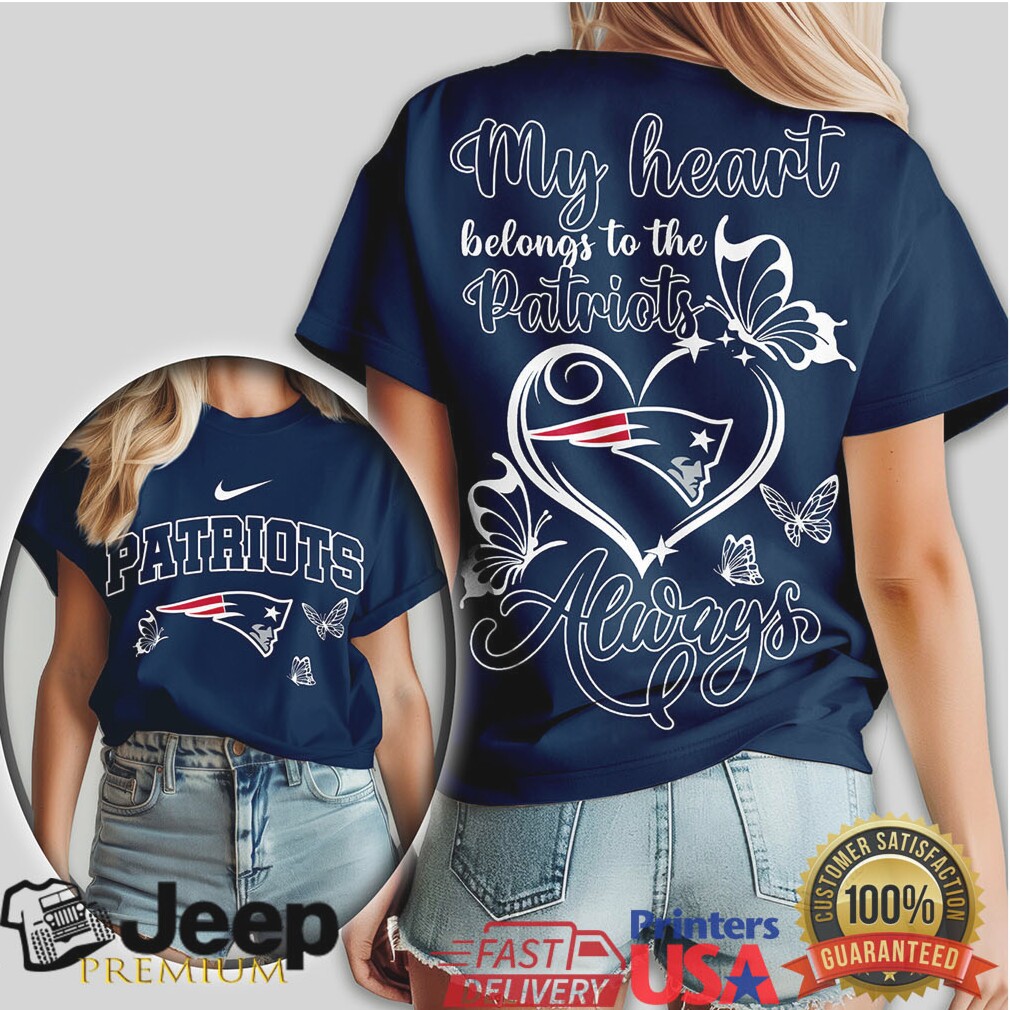 ()My Heart Belongs To The Patriots Always T Shirt New England Butterfly Tee, Treat yourself or make a great gift for your loved ones