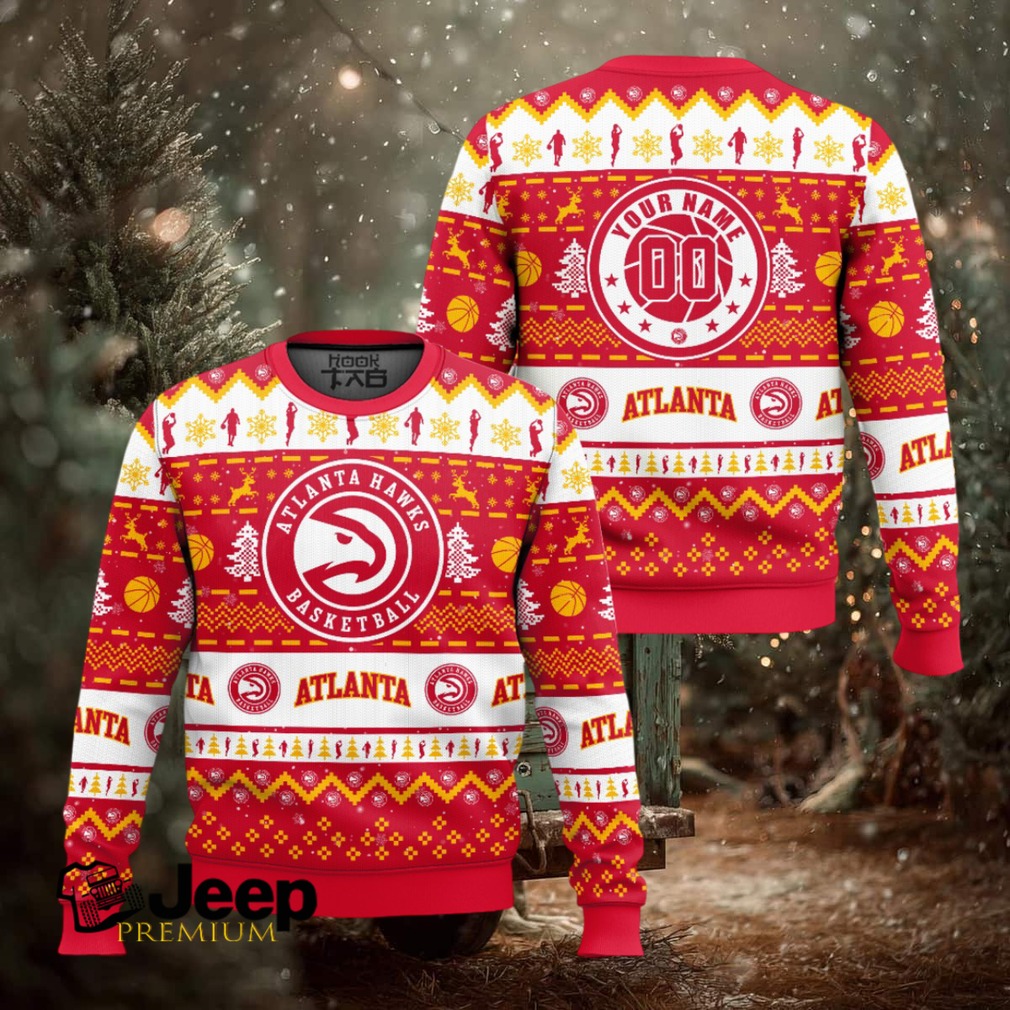 👕 About NBA Atlanta Hawks Custom Name And Number Ugly Christmas Sweater