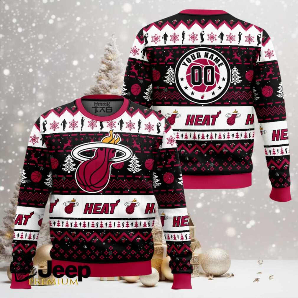 👕 About NBA Miami Heat Custom Name And Number Ugly Christmas Sweater