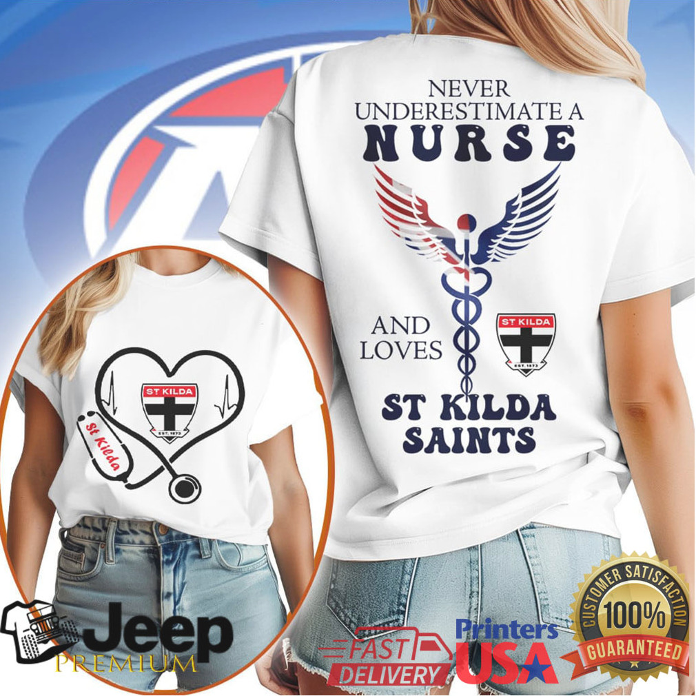 (Never Underestimate A Nurse And Loves St Kilda Saints T Shirt)Never Underestimate A Nurse And Loves St Kilda Saints T Shirt, Treat yourself or make a great gift for your loved ones