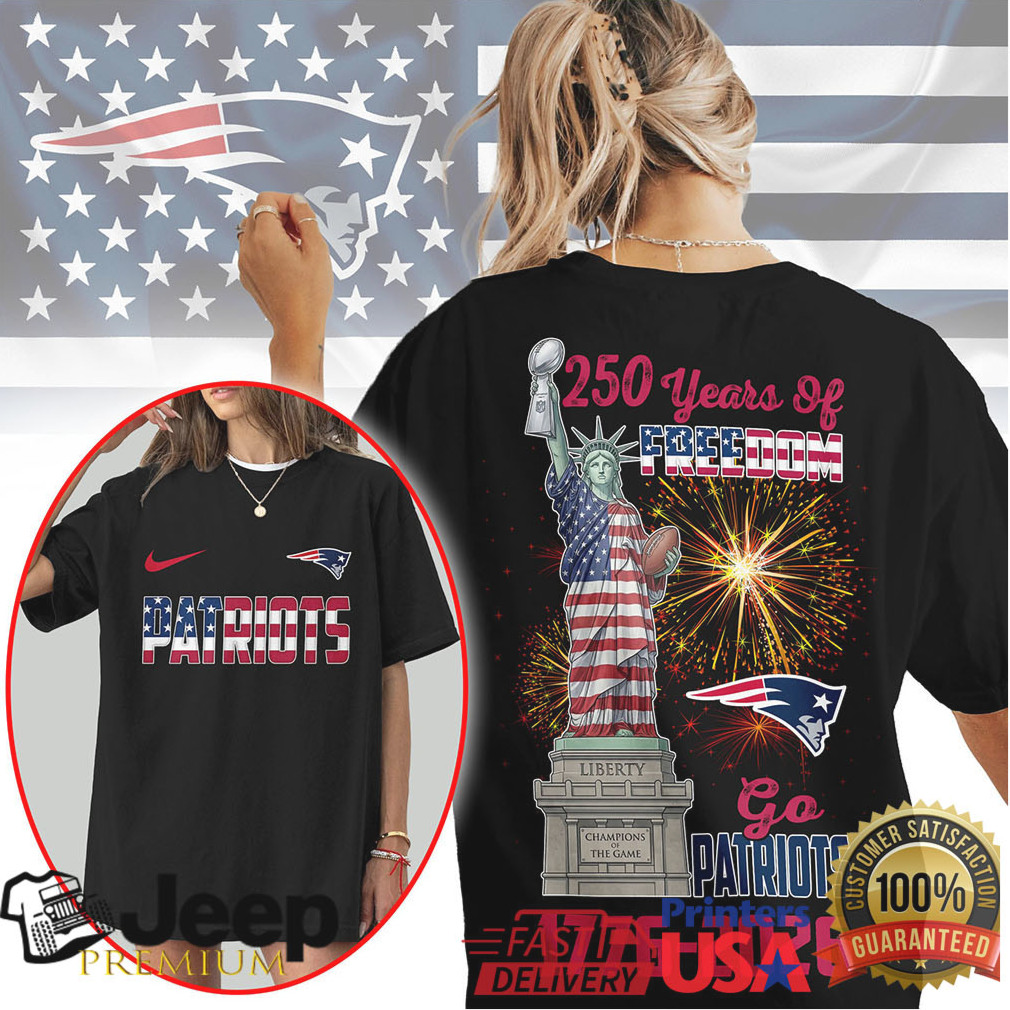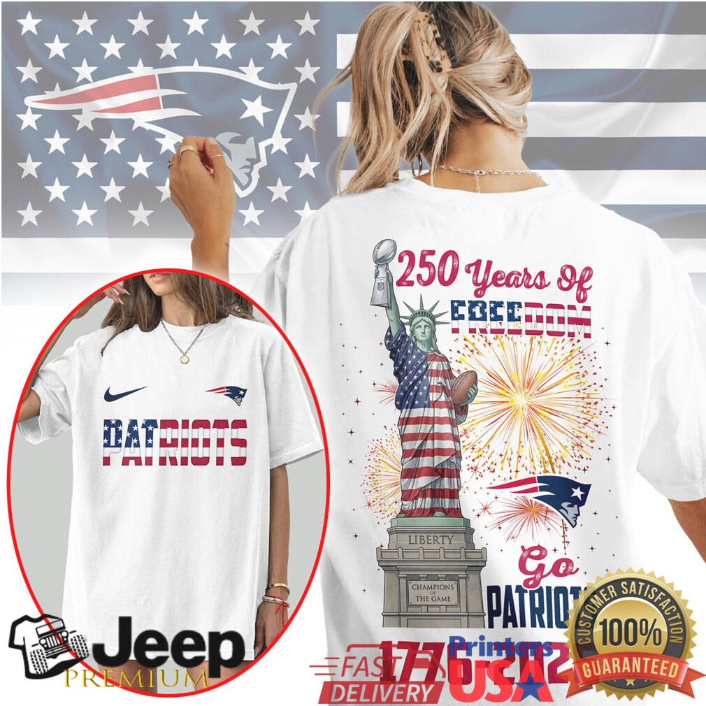 Celebrate America’s 250th Anniversary of Independence with this patriotic New England Patriots T-Shirt. Commemorating 250 years of freedom from 1776 to 2026, this tee perfectly blends team pride with American patriotism. Features a stunning design with liberty-themed imagery and team branding. Ideal for Independence Day celebrations, game days, and showing off your red-white-and-blue spirit. A collector’s item every patriotic fan needs.