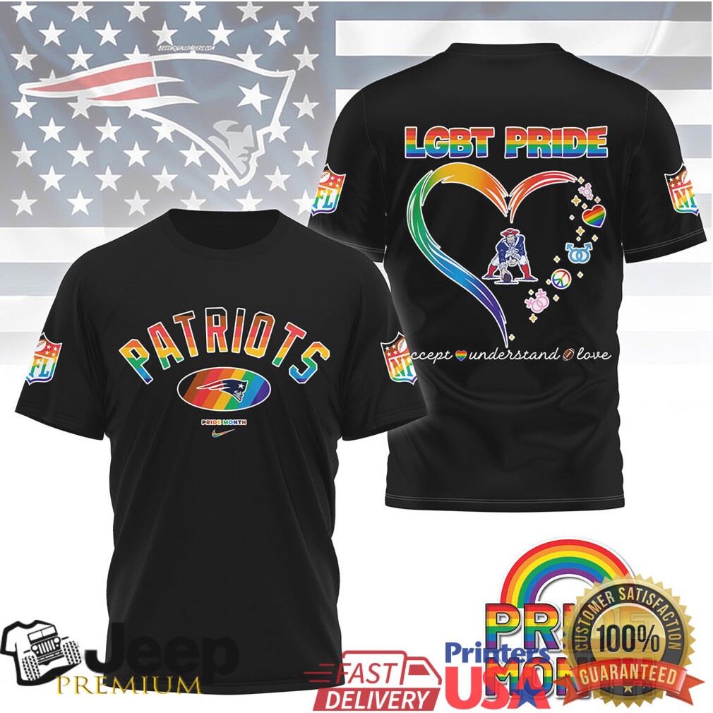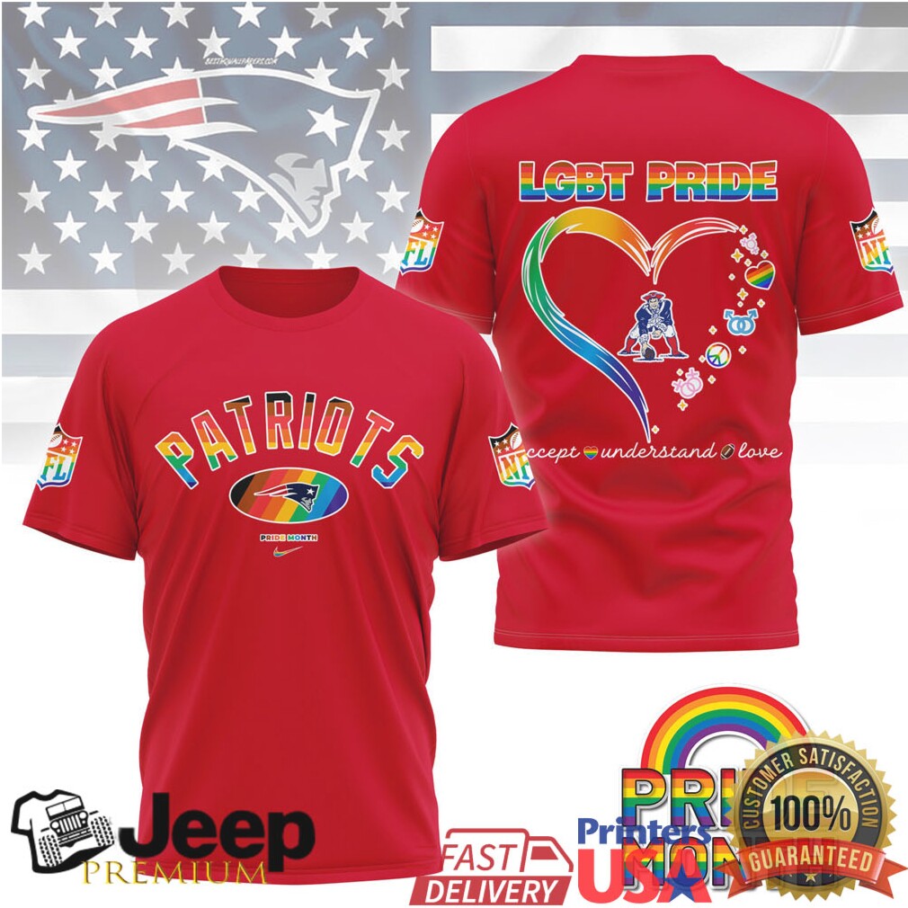 👕 About New England Patriots LGBT Pride Month Rainbow Heart T Shirt