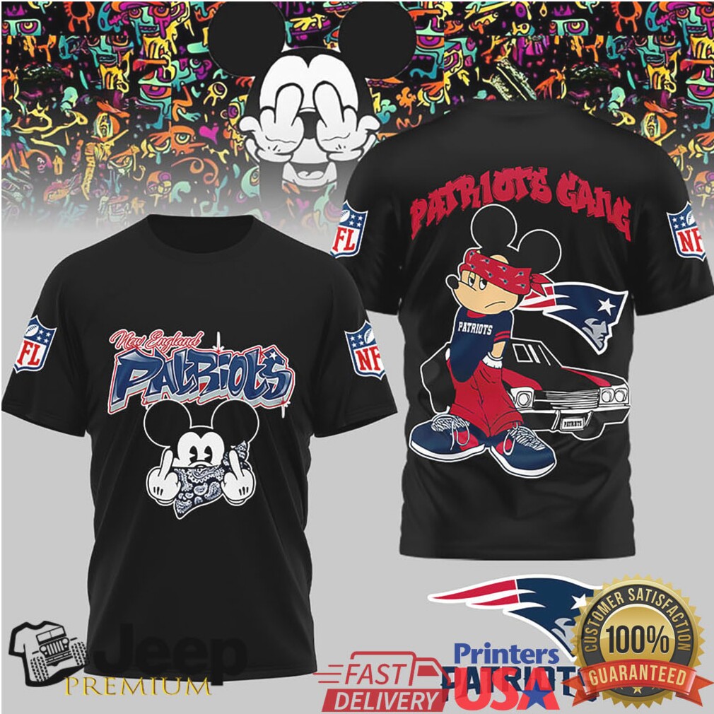 The football match is considered as the randomest sports match of the world. During the game, a relatively weak team would be highly possible to beat the super strong team, which makes spectators enthusiastic to watch each match and there are still supporters for the underdog. What’s more, the randomness also promotes the gambling industry in this area, causing much more focus and ardour. The balance of the strength of each country. If a sport was dominated only by one country or a few, the sport won’t catch too many eyes around the world and the formal competition won’t hold as much either. As basketball is dominated by the US and some European countries, many football teams in Africa are still hoping to play against the super teams in Europe, even if they have to train in simple New England Patriots Official NFL Gangsta Mickey 3D Shirt rather than professional kits. This promotes the globalisation of the sports. To make a sport popular world-wide, you need the basic infrastructure everywhere. Soccer does not require a specially made court.