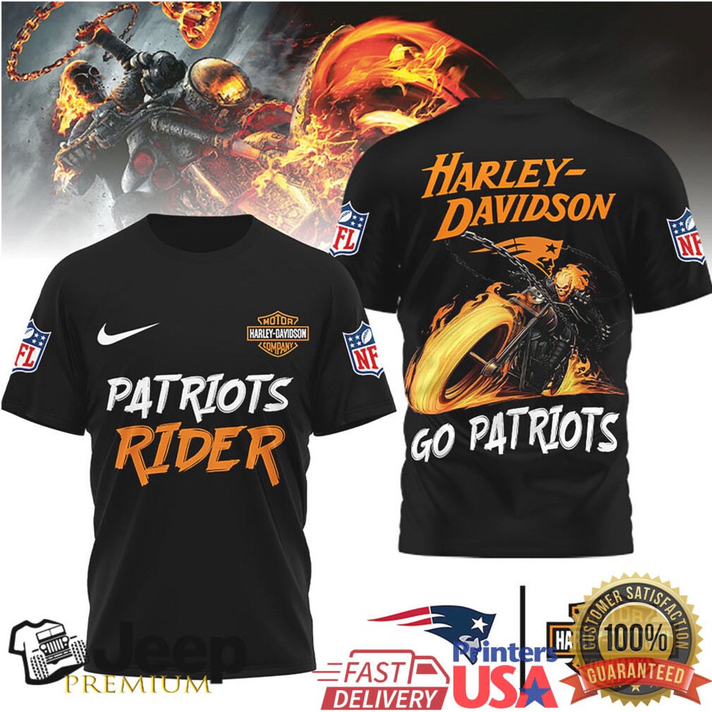 👕 About New England Patriots Official NFL Ghost Rider Harley Davidson 3D Shirt