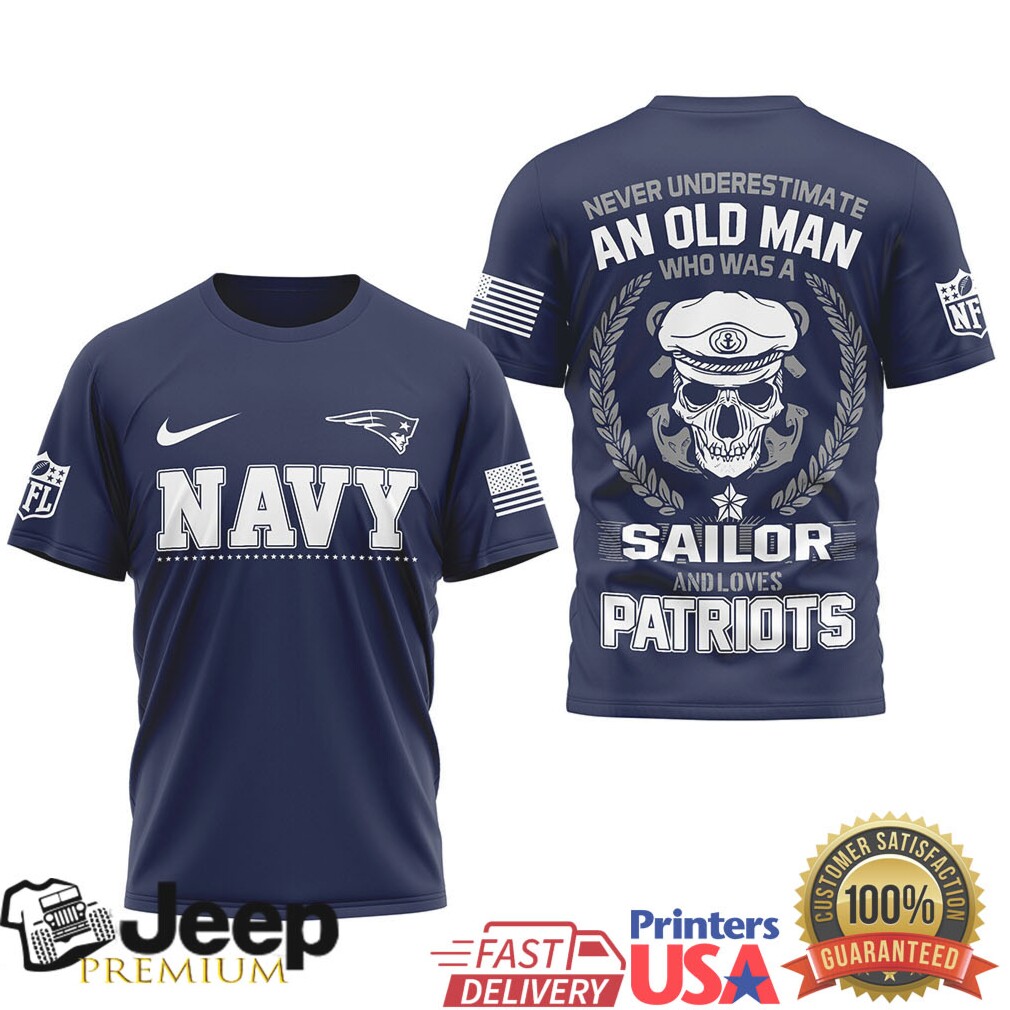 ()New England Patriots Official NFL Navy Veteran 3D Shirt, Treat yourself or make a great gift for your loved ones