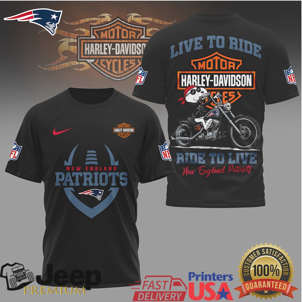 👕 About New England Patriots Official NFL Snoopy Harley Davidson 3D Shirt