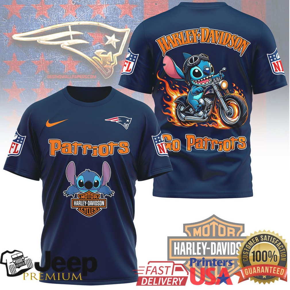 ()New England Patriots Official NFL Stitch Harley Davidson 3D Shirt, Sport Hoodie and Sport Shirt
