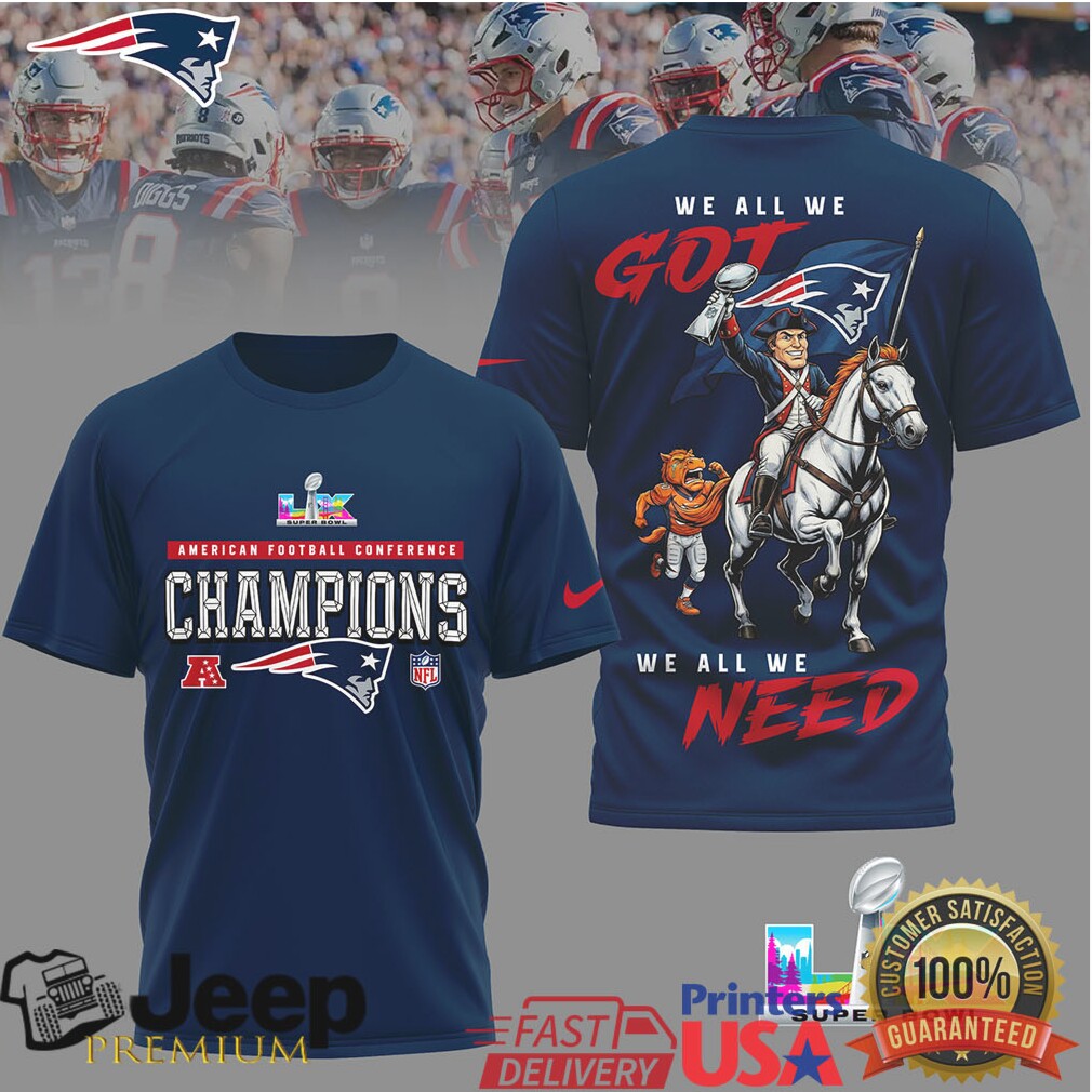 (New England Patriots Super Bowl LIX Champions We All We Got T Shirt)New England Patriots Super Bowl LIX Champions We All We Got T Shirt, Treat yourself or make a great gift for your loved ones