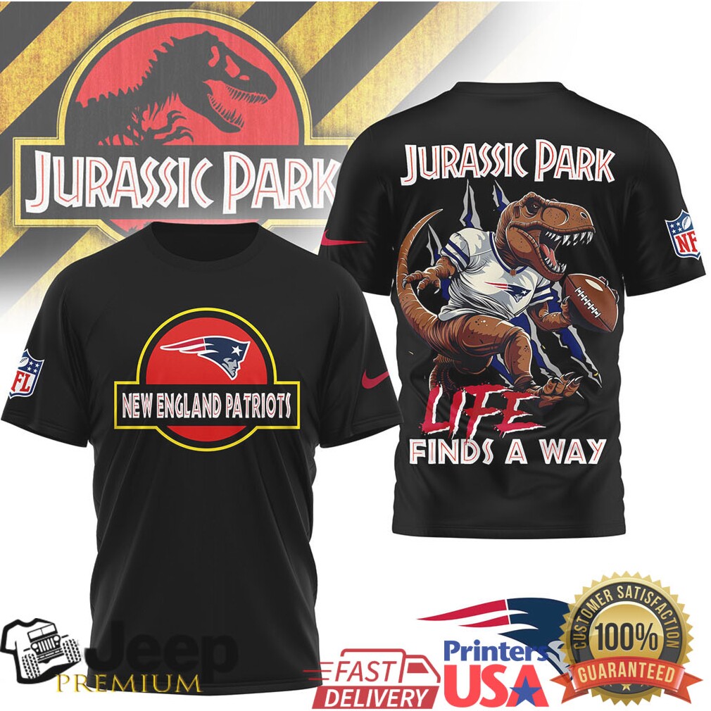 (New England Patriots x Jurassic Park “Life Finds A Way” Mashup T Shirt)New England Patriots x Jurassic Park “Life Finds A Way” Mashup T Shirt, Treat yourself or make a great gift for your loved ones